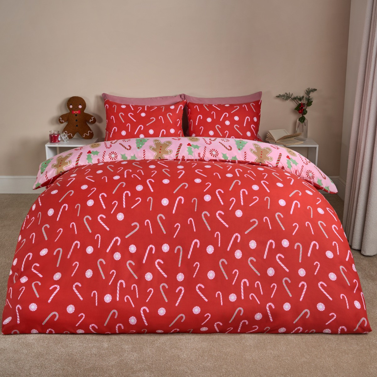 OHS Gingerbread Man Candy Cane Reversible Duvet Set - Pink