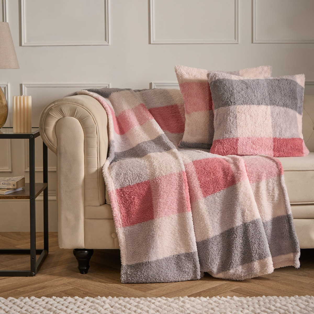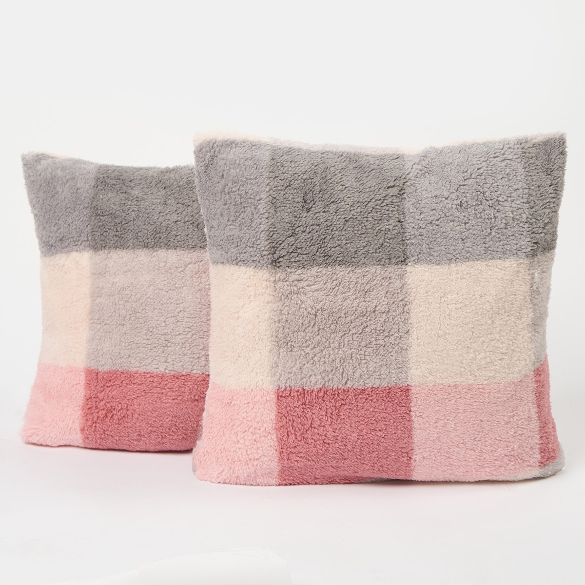 OHS Gingham Check Teddy Cushion Covers - Blush
