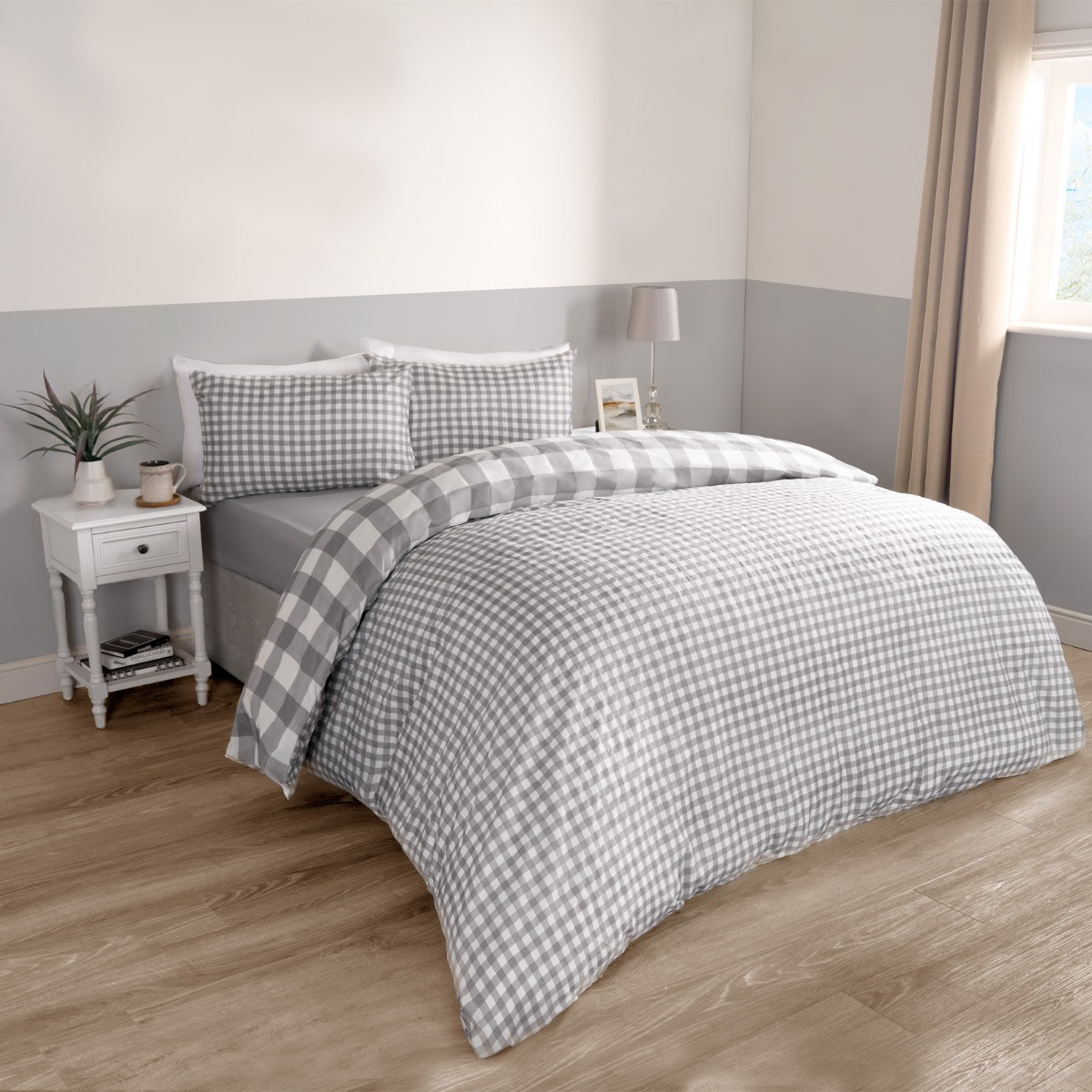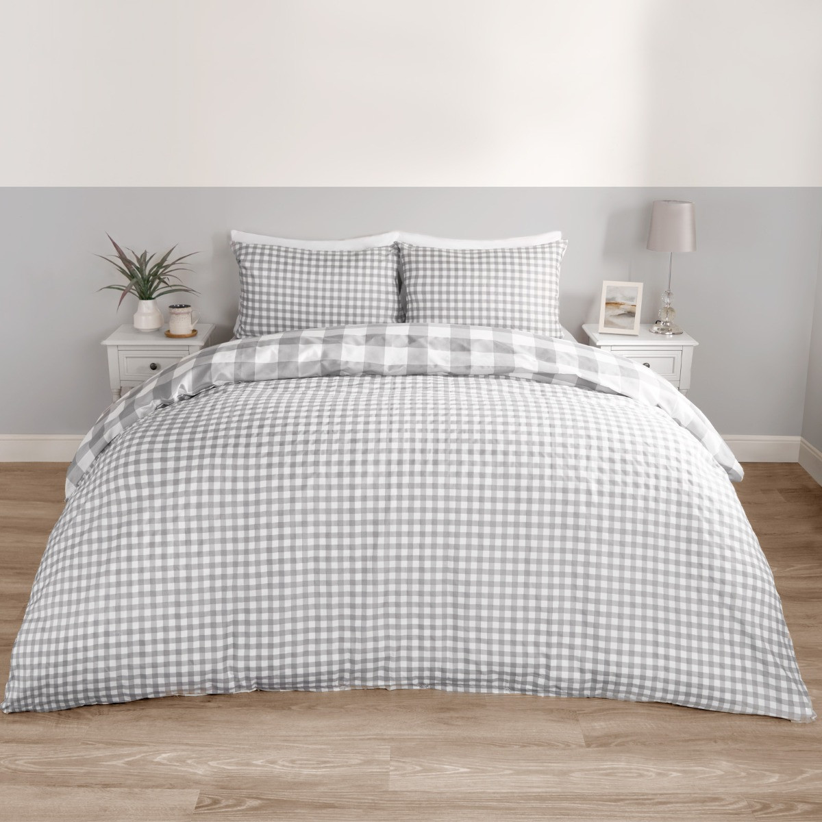 OHS Gingham Reversible Duvet Cover Set - Grey