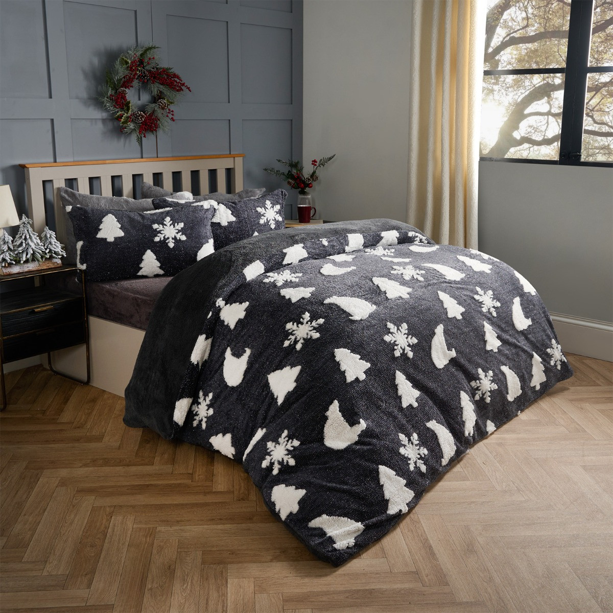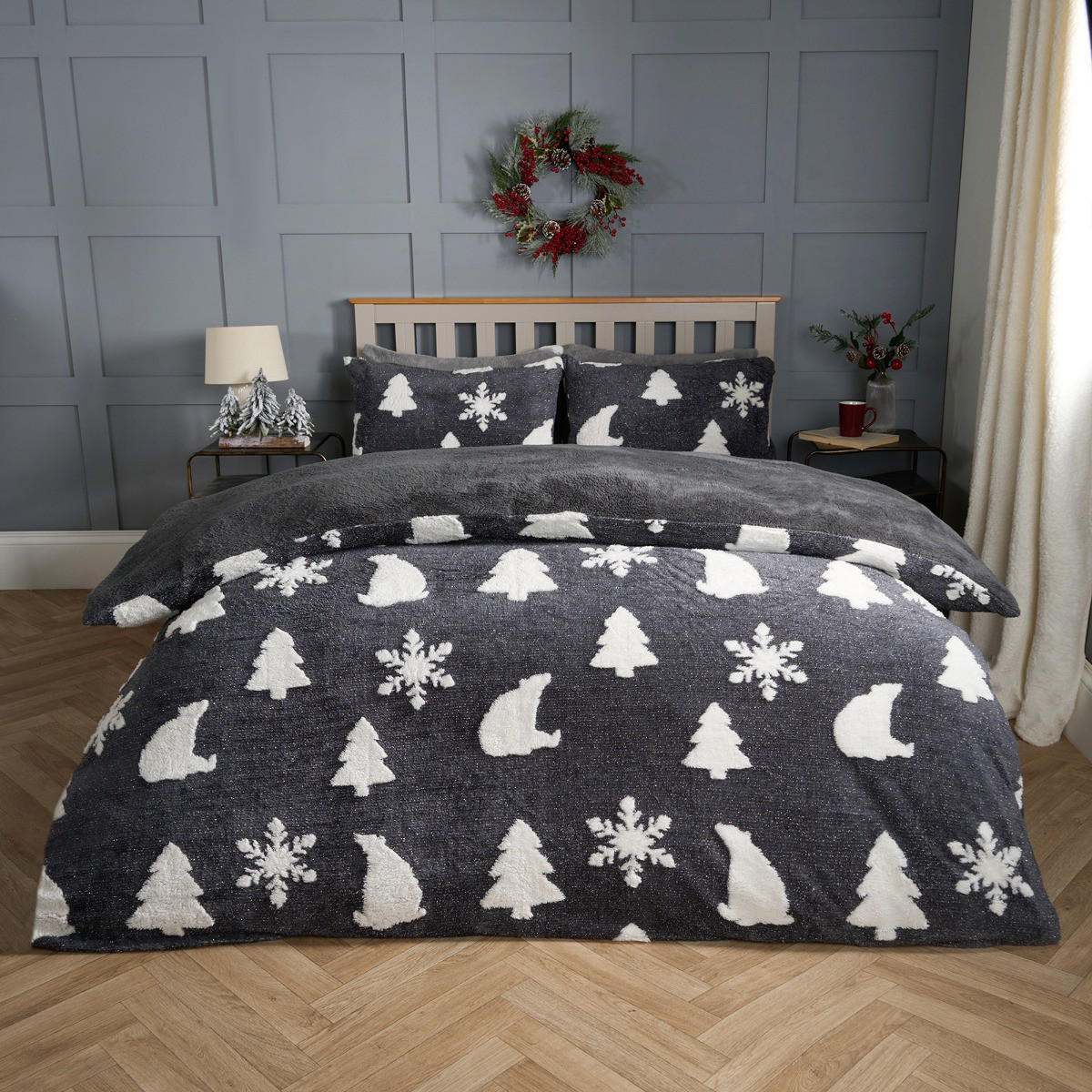 OHS Glitter Tufted Polar Bear Duvet Set - Grey