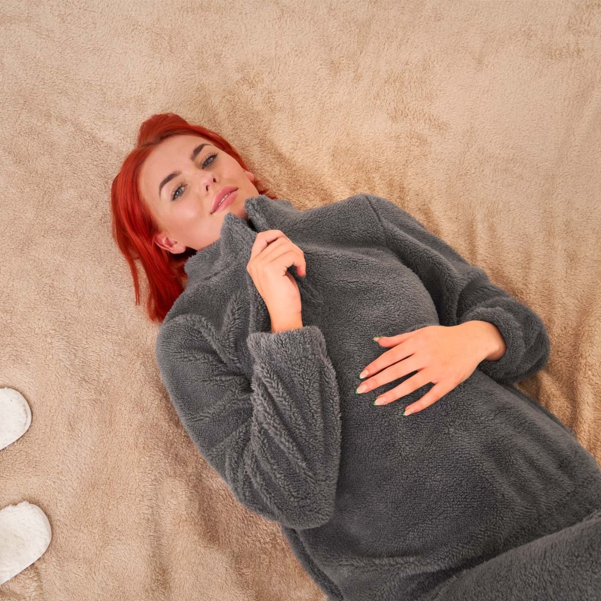 Get ready to relax in our teddy fleece sweatshirt which is soft and cosy, this item features long sleeves with a high collar neck, a elasticated hem line, and a half zip down the front. This item is perfect for lounging around, or to use as nightwear, or even for the ultimate work from home look.
