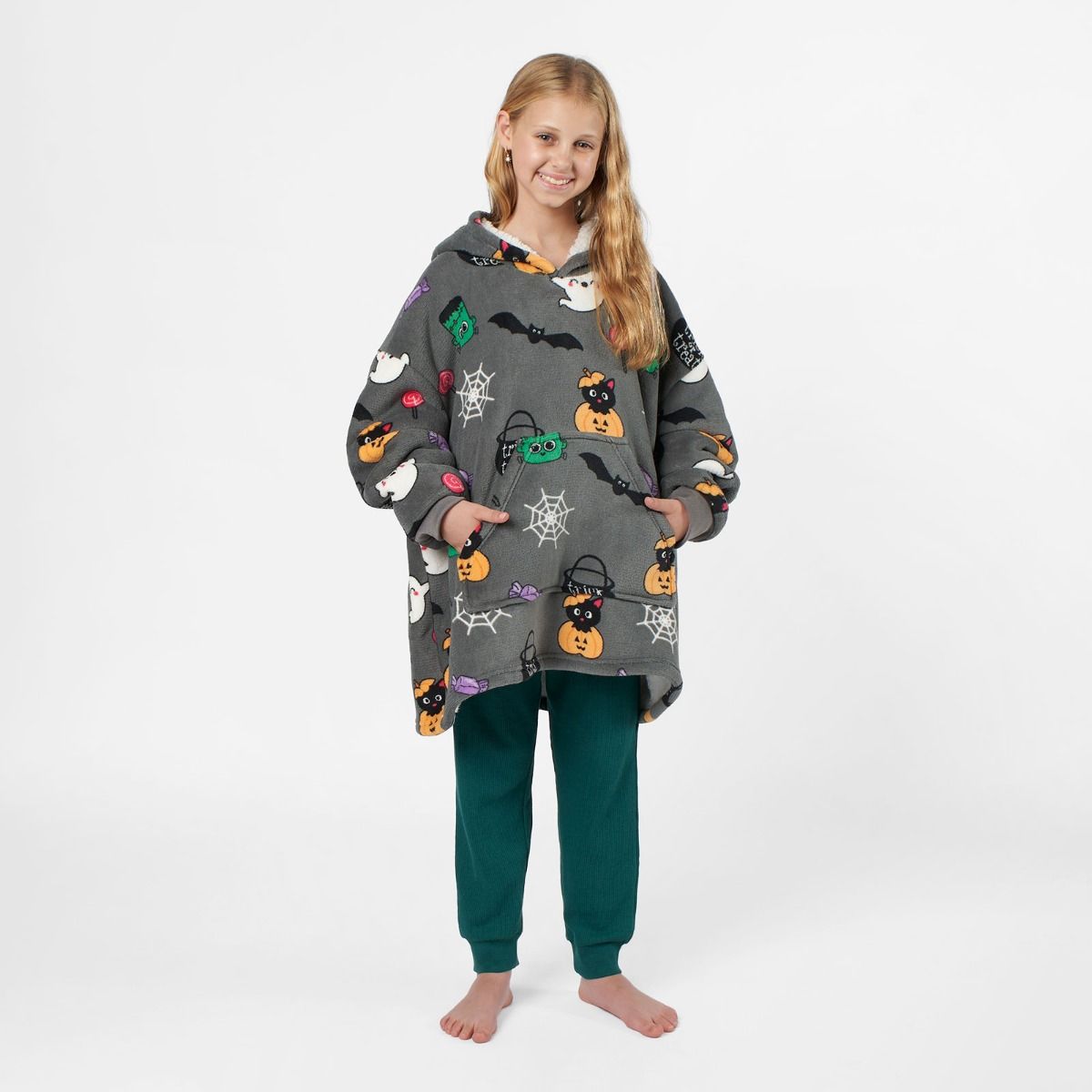 OHS Kids Halloween Print Hoodie Blanket - Charcoal