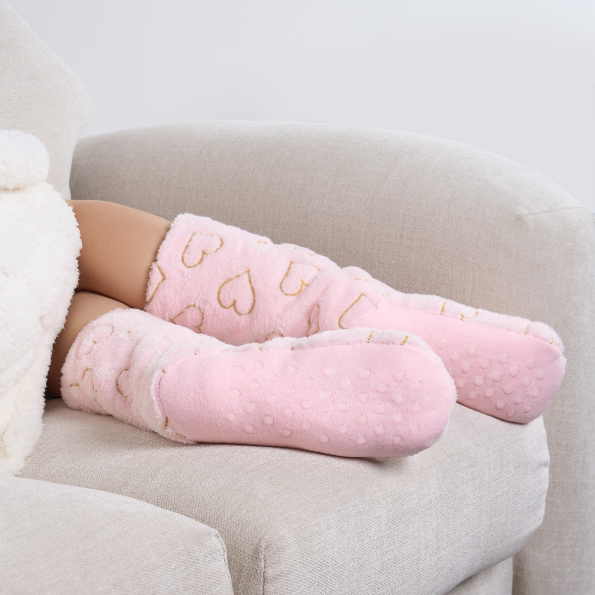 Get ready to experience the ultimate comfort with our fleece socks. They have been carefully designed with extra soft fleece to protect during the colder months. Our socks will become a staple for your winter wardrobe as they provide extra warmth and comfort compared to regular socks. Not only do they keep your feet warm, but they are also stylish. You can easily pair our black and pink socks with our dressing gown collection. Discover more colours and treat yourself today with our super fluffy fleece socks.