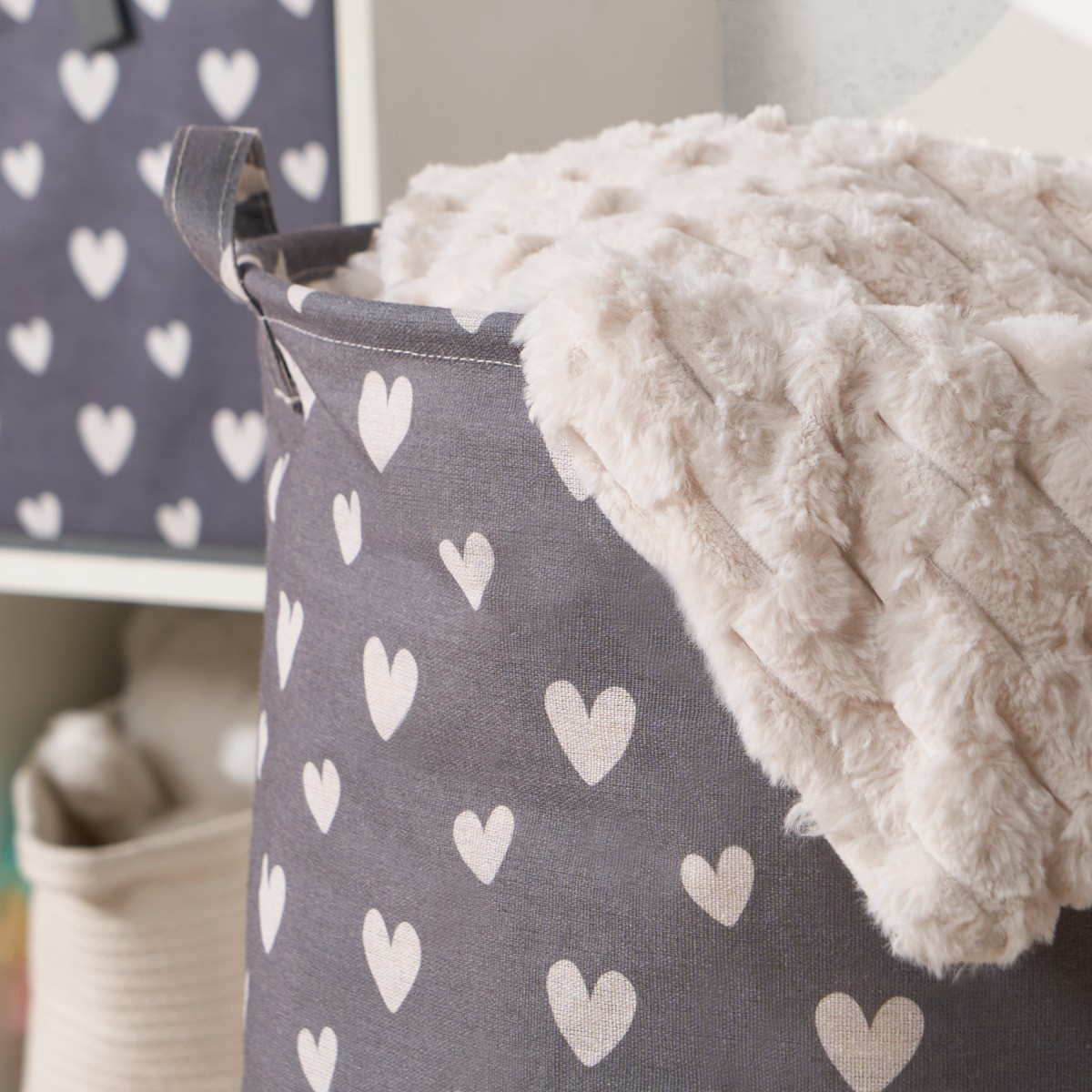 Function meets style in the home with the OHS Heart Print Storage Basket. Featuring a playful heart print, this storage basket brings a fun and cute accent to your decor while keeping your space organized. Perfect for holding toys, laundry, clothes, and more, it’s ideal for bedrooms, playrooms, or laundry areas. With sturdy handles and a freestanding design, it’s easy to move from room to room, making storage both functional and fashionable.