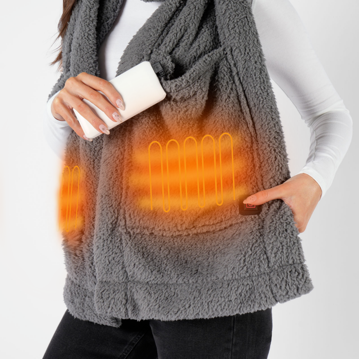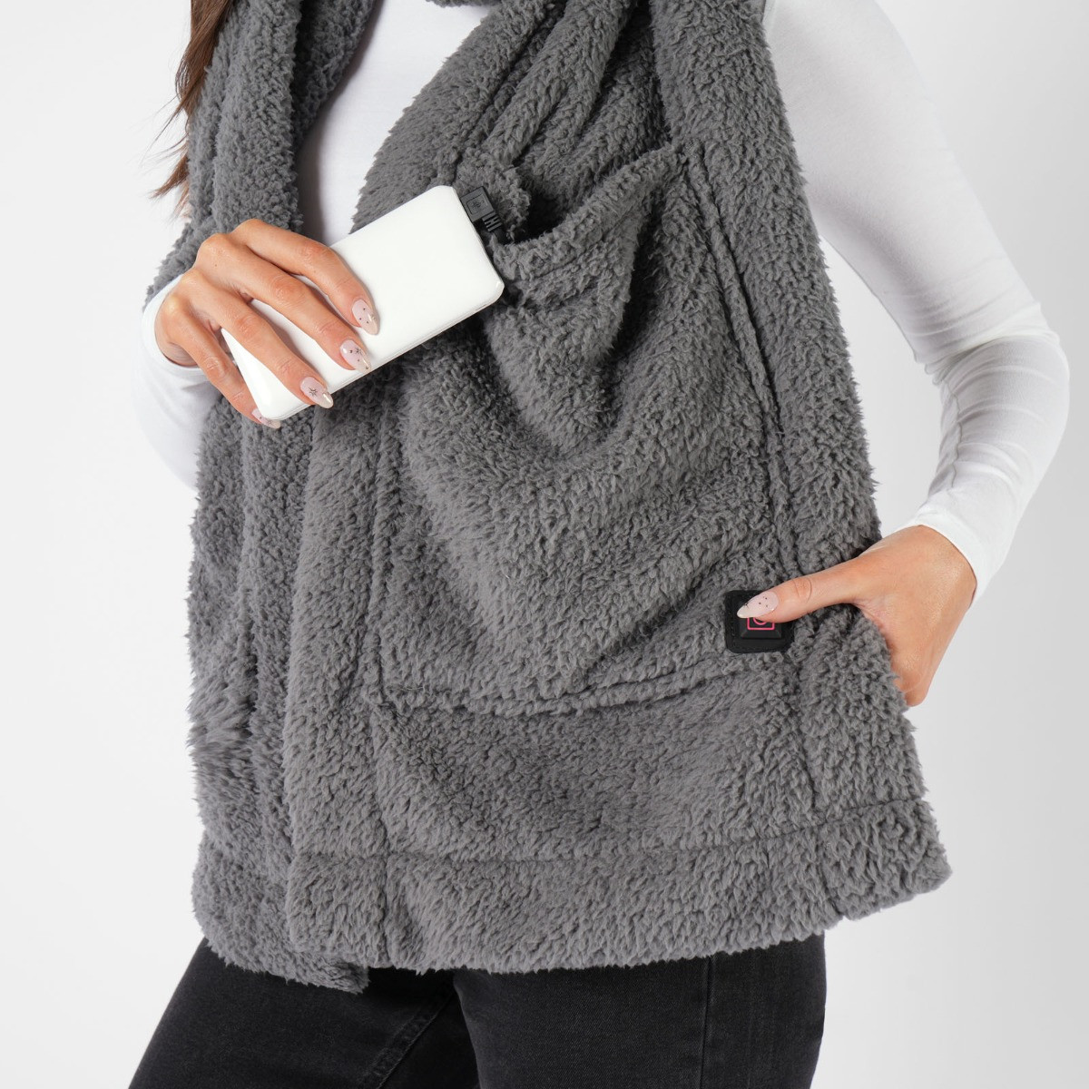 OHS Heated Teddy Pocket Scarf - Charcoal