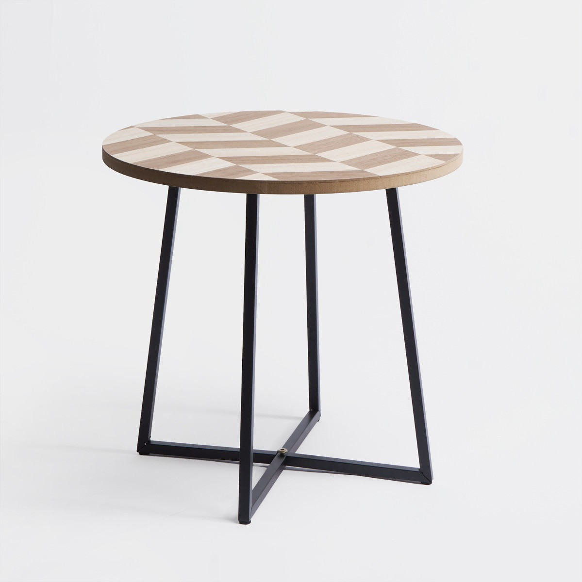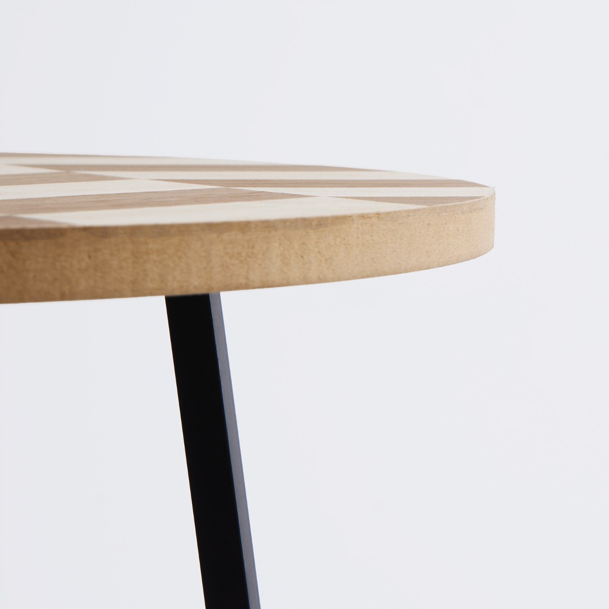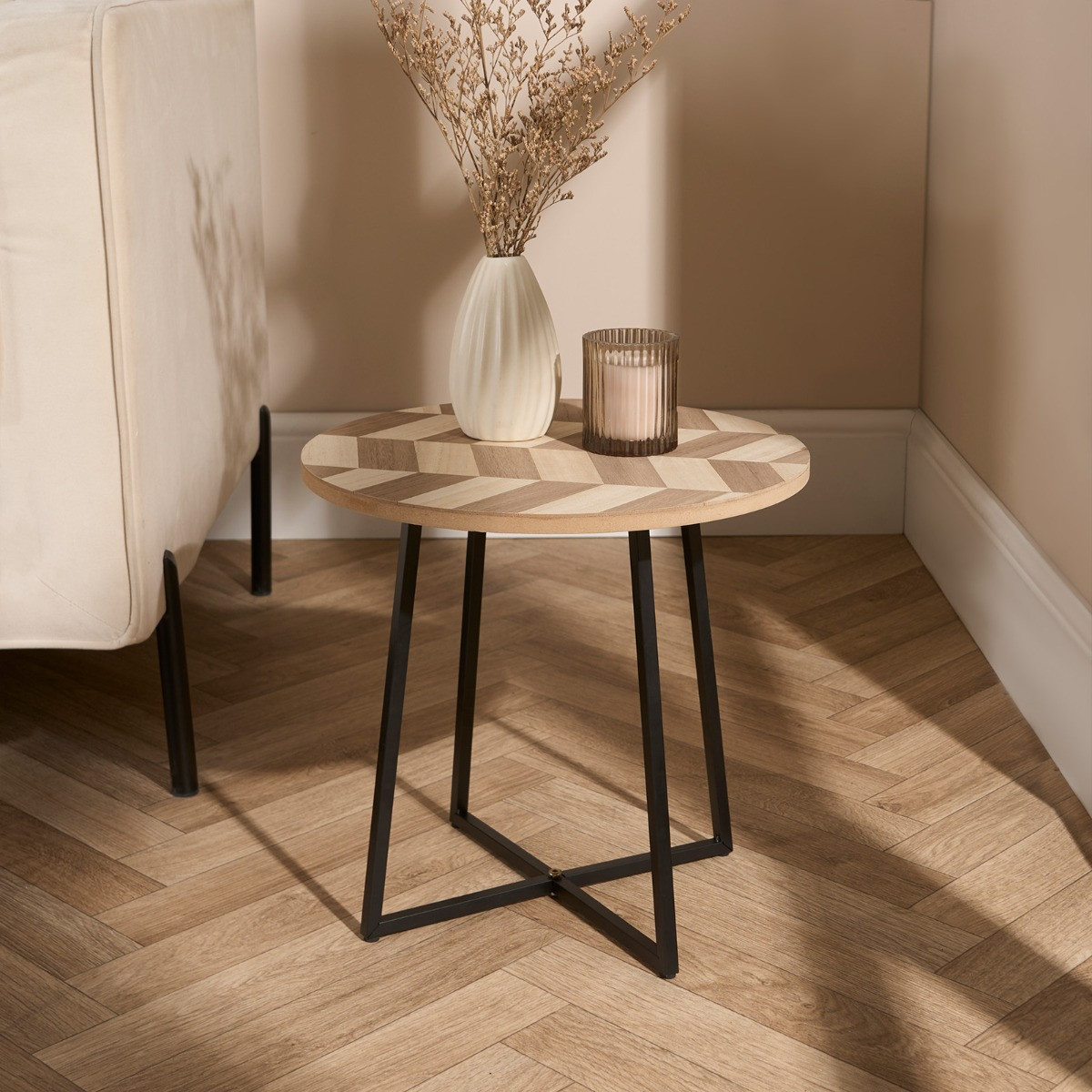 Enhance your living space with the sophisticated charm of the OHS Herringbone Round Side Table in Wood. This elegantly designed side table features a classic herringbone pattern and a sleek round shape, making it a stylish and functional addition to any room. The table showcases a distinctive herringbone pattern on its surface, crafted from high-quality wood. This timeless design element adds texture and visual interest, elevating the overall aesthetic of the table.