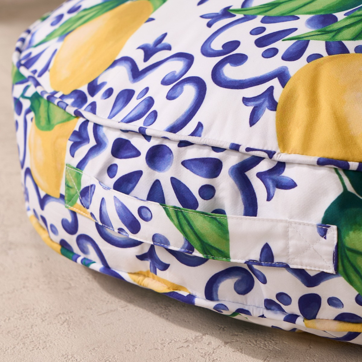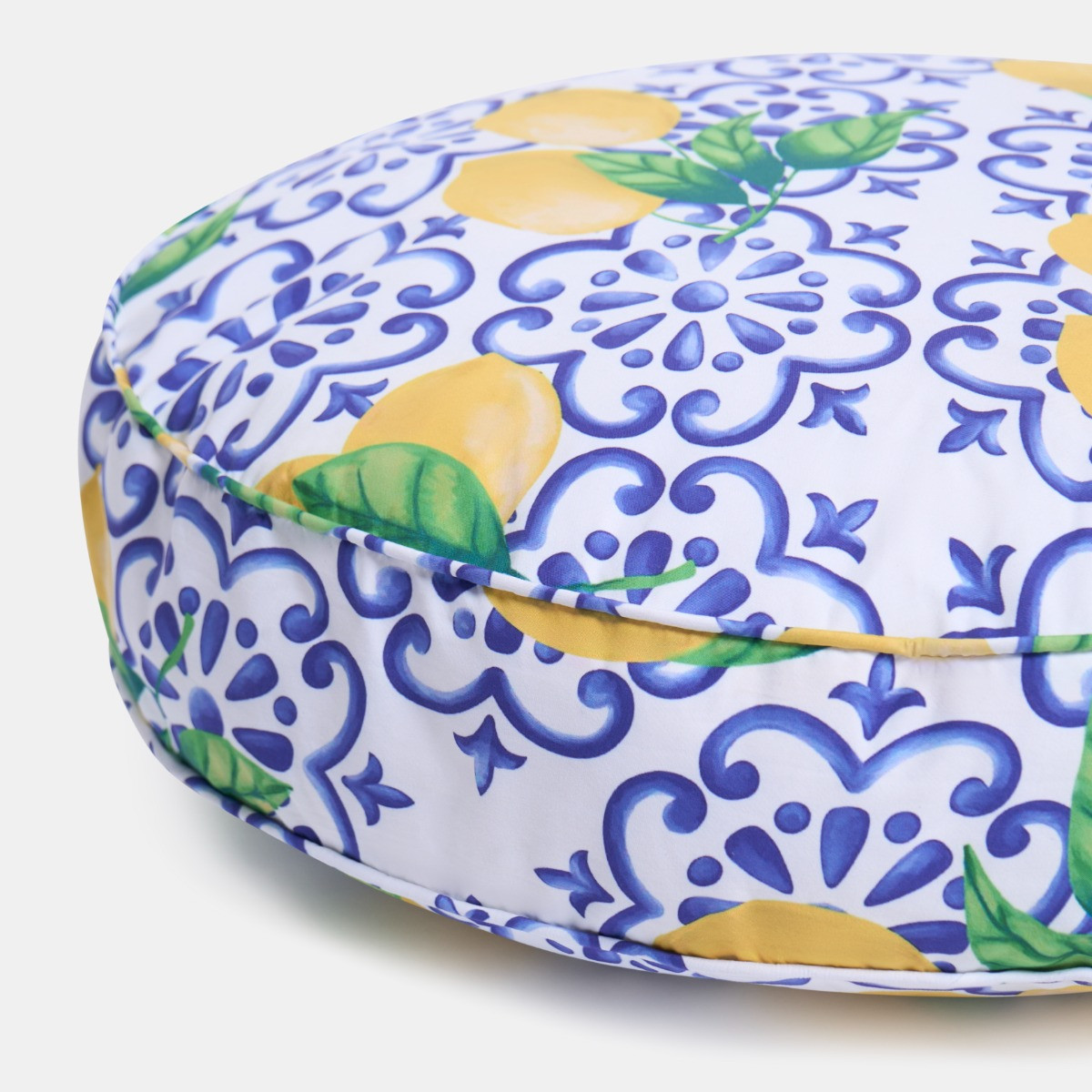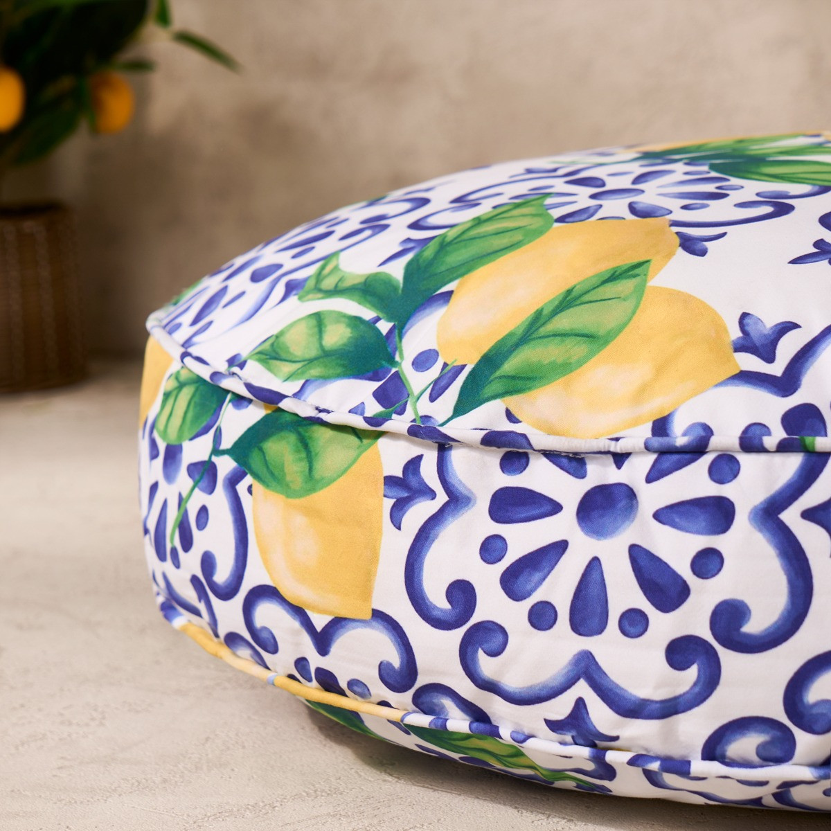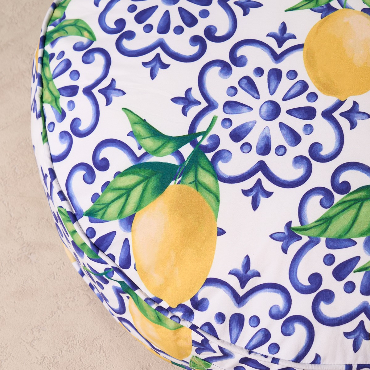OHS Indoor/Outdoor Round Lemon Print Filled Cushion - White/Blue