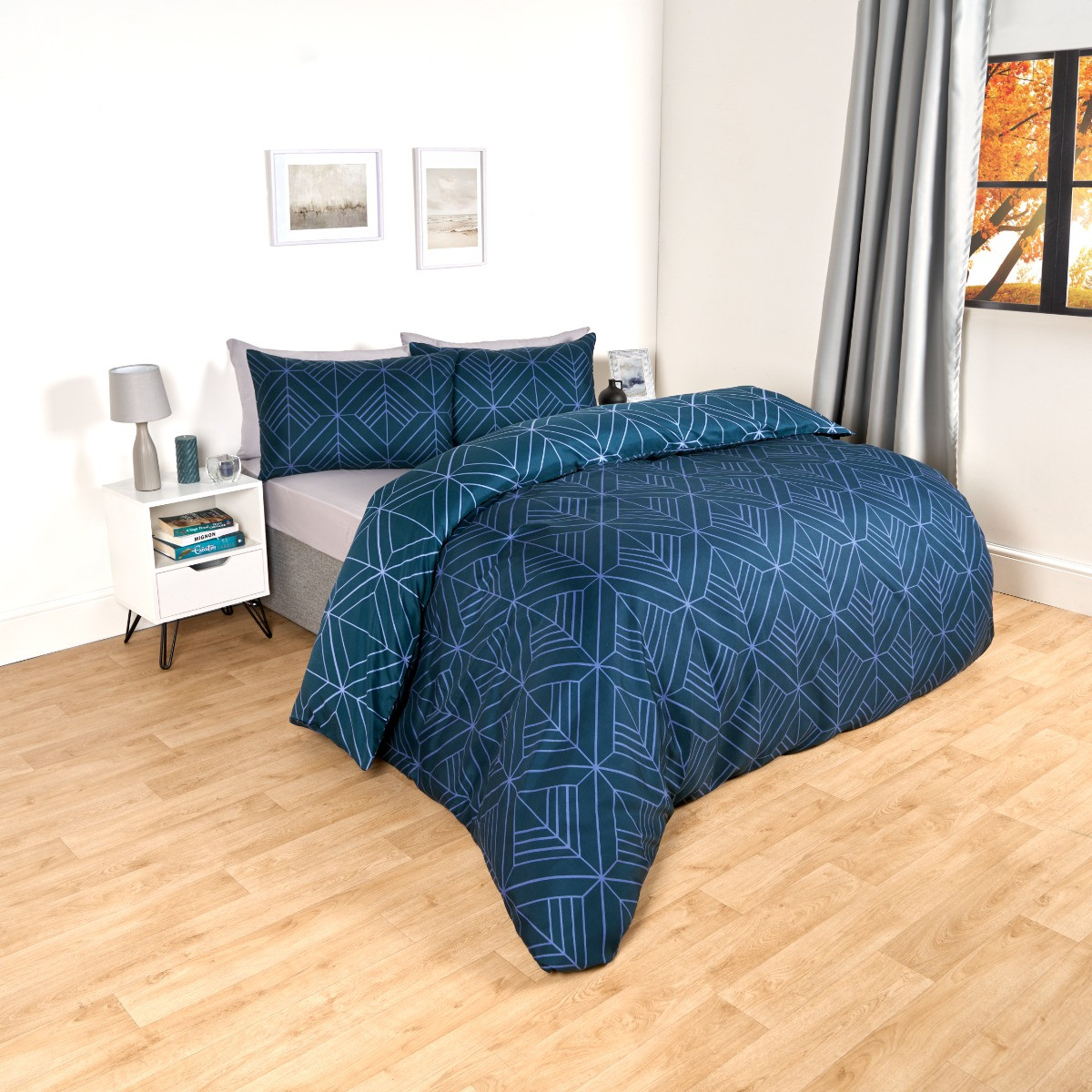 OHS Isaac Geometric Duvet Cover Set, Navy - Double