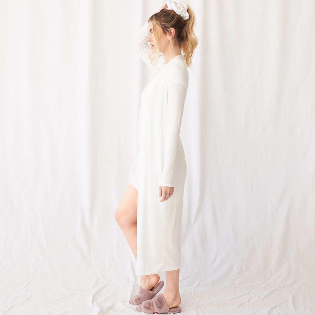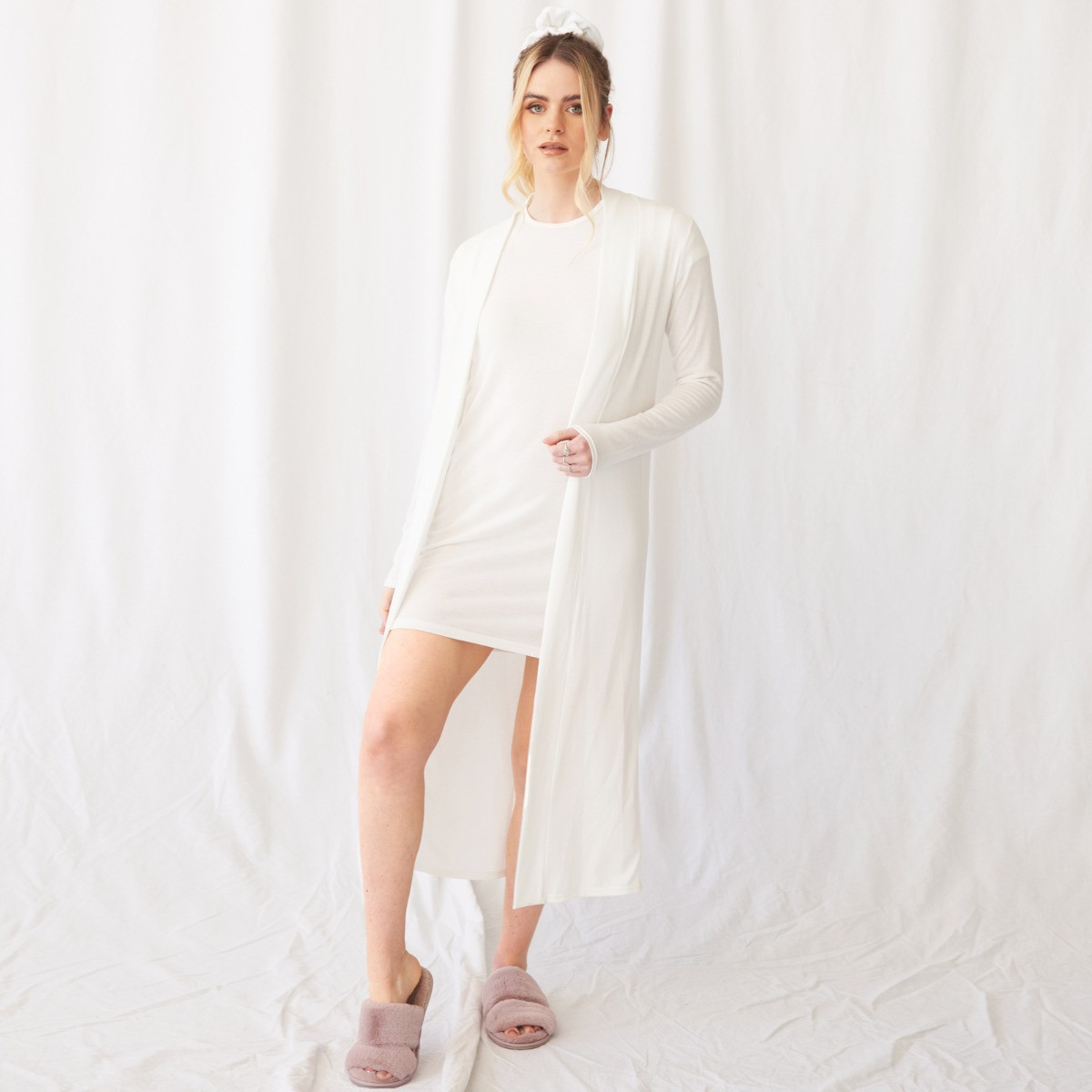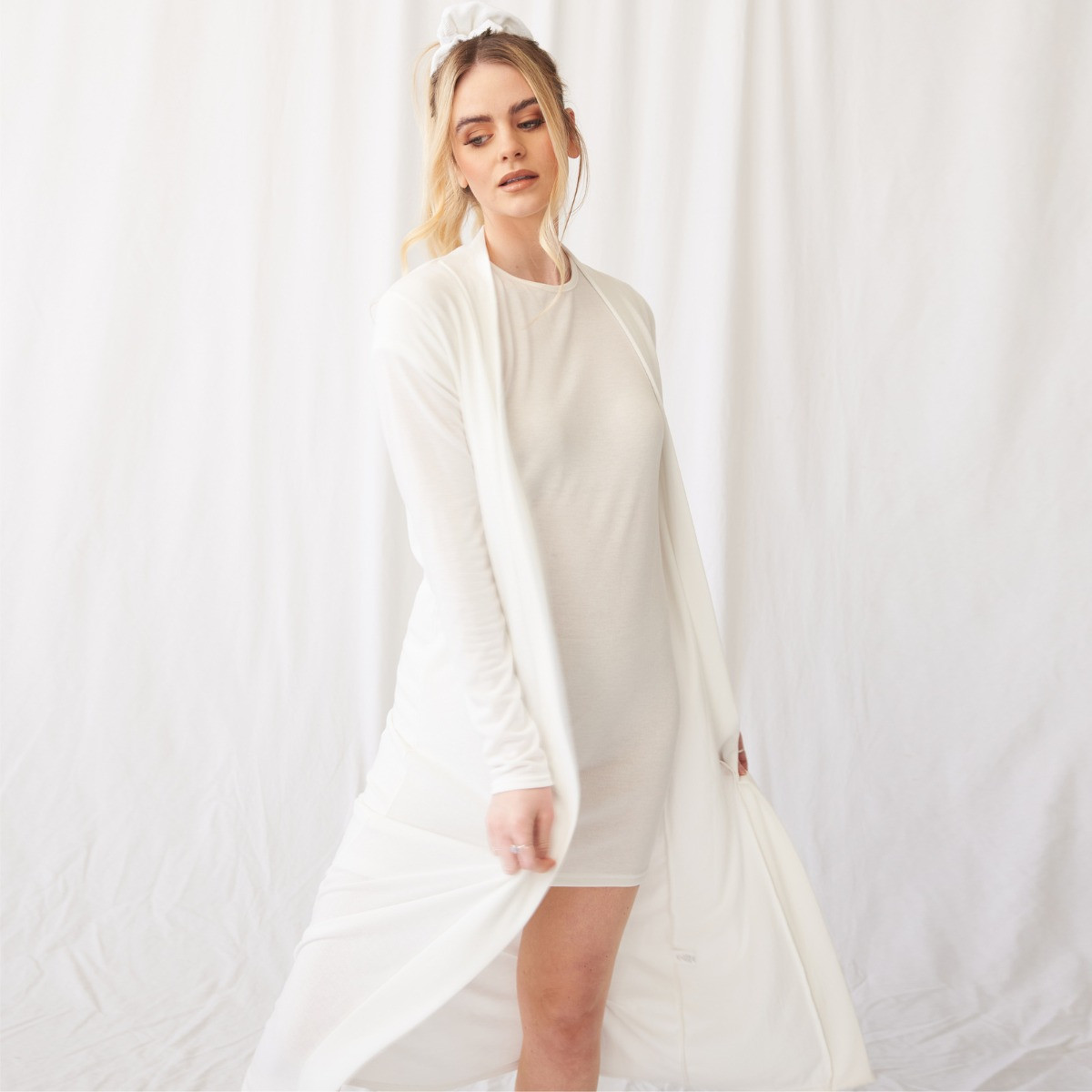 Add the wow factor to your current loungewear wardrobe with our cream jersey maxi cardigan. With it’s flattering shape and comfortable fabric, makes this cardigan perfect for lounging around your home in. Team with our matching jersey flares and crop top to look totally on trend this season.