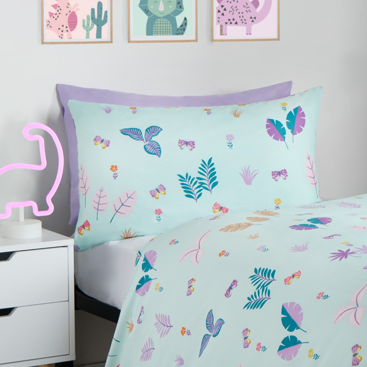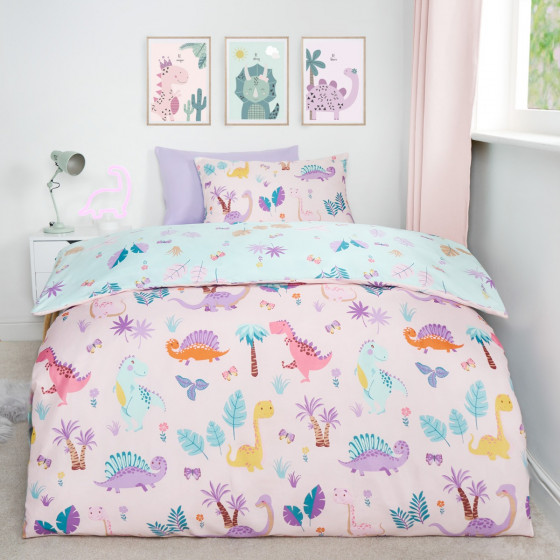 OHS Kids Dinosaur Print Reversible Duvet Cover Set, Pink/Blue - Single