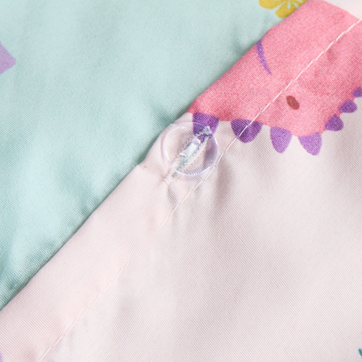 The OHS Kids Dinosaur Print Reversible Duvet Cover Set in Pink/Blue is a charming and versatile bedding option for children's bedrooms. On one side, adorable pastel dinosaurs roam across a soft blush pink background, adding a playful touch to the room. Flip it over to reveal a serene light blue backdrop adorned with lovely leaves and foliage, offering a refreshing and calming aesthetic. Made with high-quality materials, this duvet cover set not only showcases a delightful design but also provides comfort for a restful night's sleep. With its reversible feature, you can easily switch up the look of the room to suit your child's mood or preference. Perfect for young dinosaur enthusiasts or nature-loving kids, this duvet cover set combines style, comfort, and fun in one package. Available in the following sizes: