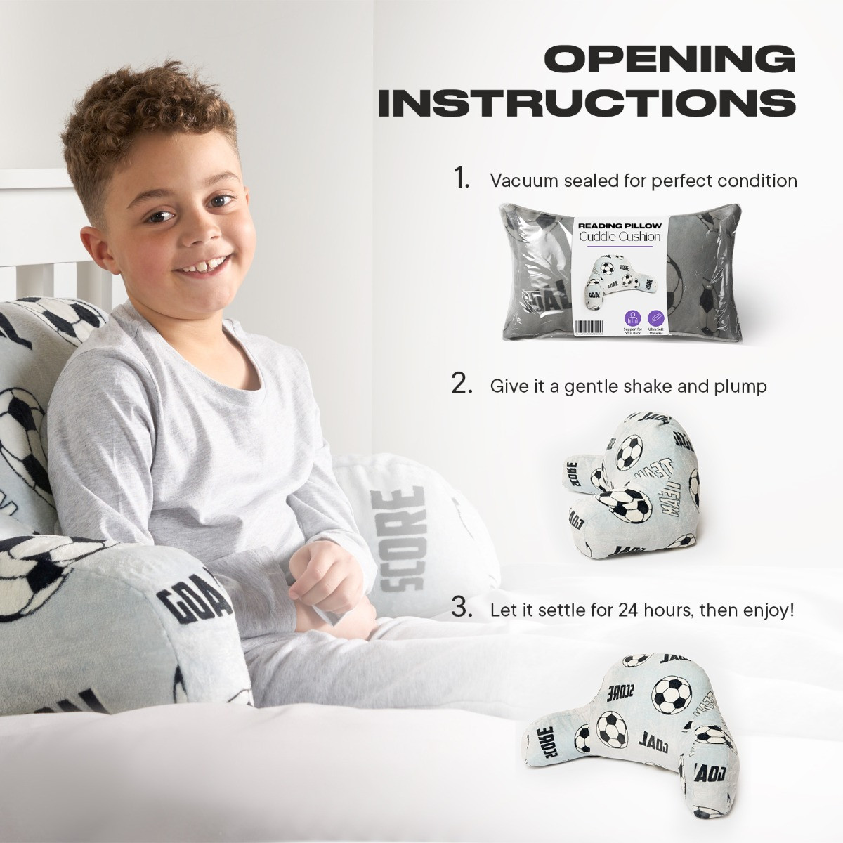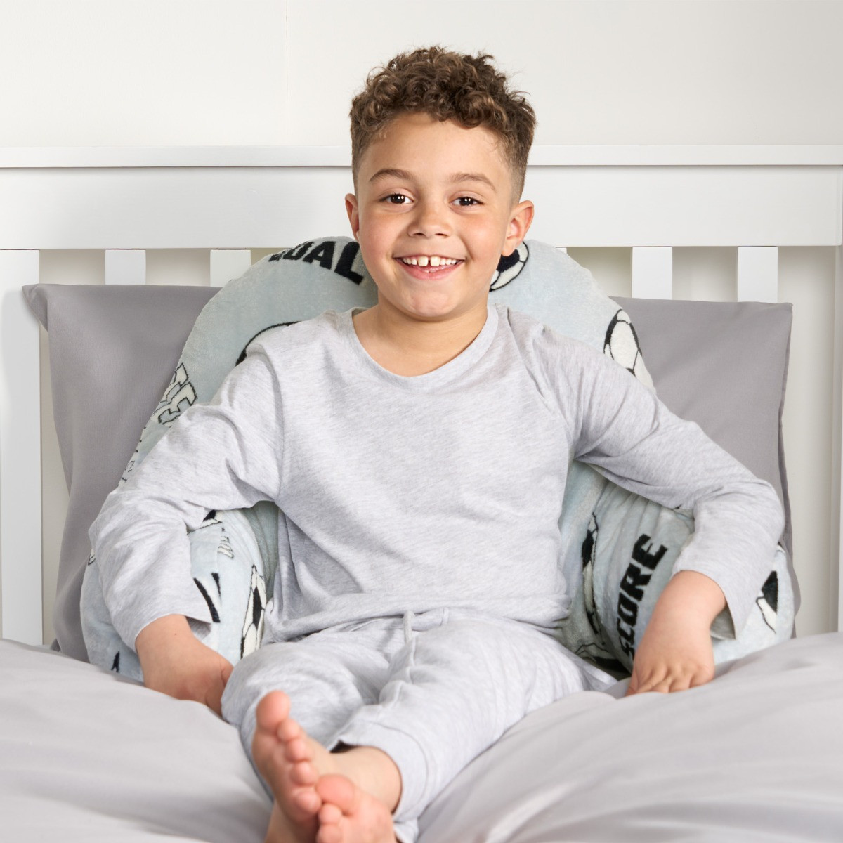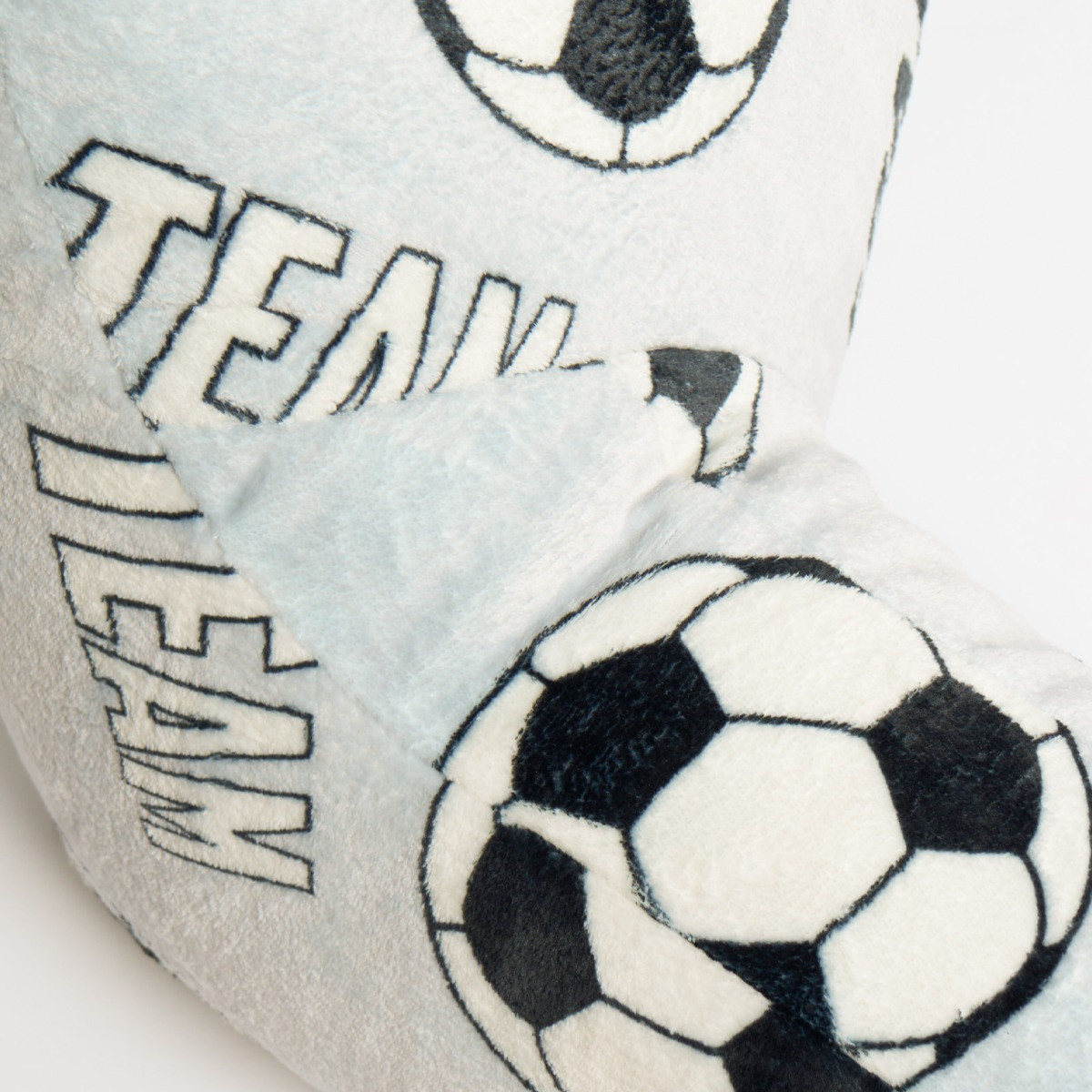 Introducing the OHS Kids Football Fleece Cuddle Cushion in Grey, the perfect addition to any young football fan's space. This cuddle cushion showcases footballs and rallying words against a clean grey background, bringing the excitement of the game into their room. Designed for versatility, this cushion is ideal for both bed and chair lounging, offering a cosy spot for reading, relaxing, or cheering on their favorite team. Crafted from soft and plush fleece fabric and generously filled, it provides a snuggly haven for your child to unwind in comfort after a day of play. Elevate your child's love for football with the OHS Kids Football Fleece Cuddle Cushion in Grey.