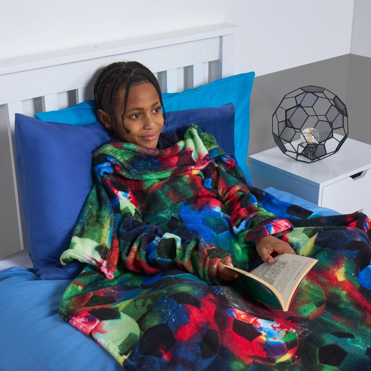 The OHS Kids Football Printed Wearable Blanket is a cosy and practical choice for young football enthusiasts. Featuring a neon football-themed design, this wearable blanket is perfect for keeping your child warm during chilly days or while lounging at home. Made from soft, high-quality fleece material, it offers both comfort and durability. The oversized arms and large collar provide extra warmth and a snug fit, ensuring your little one stays comfortable. This wearable blanket is not only functional but also makes a fantastic gift for any young football fan.