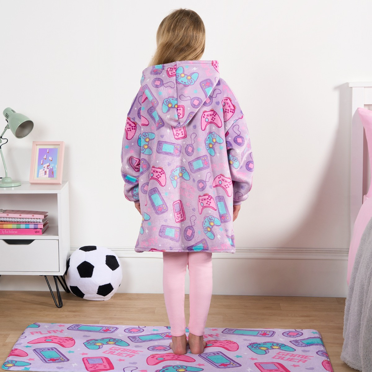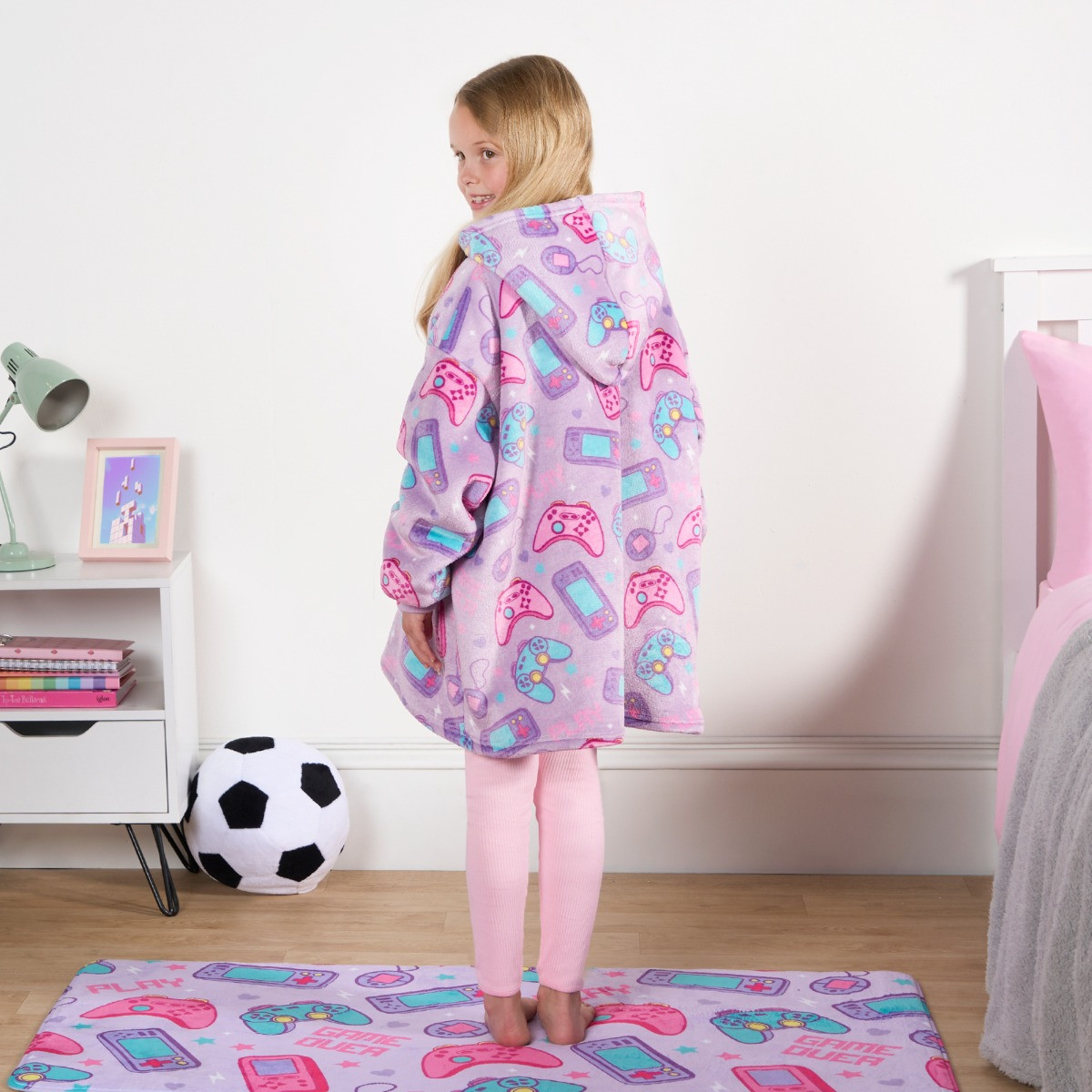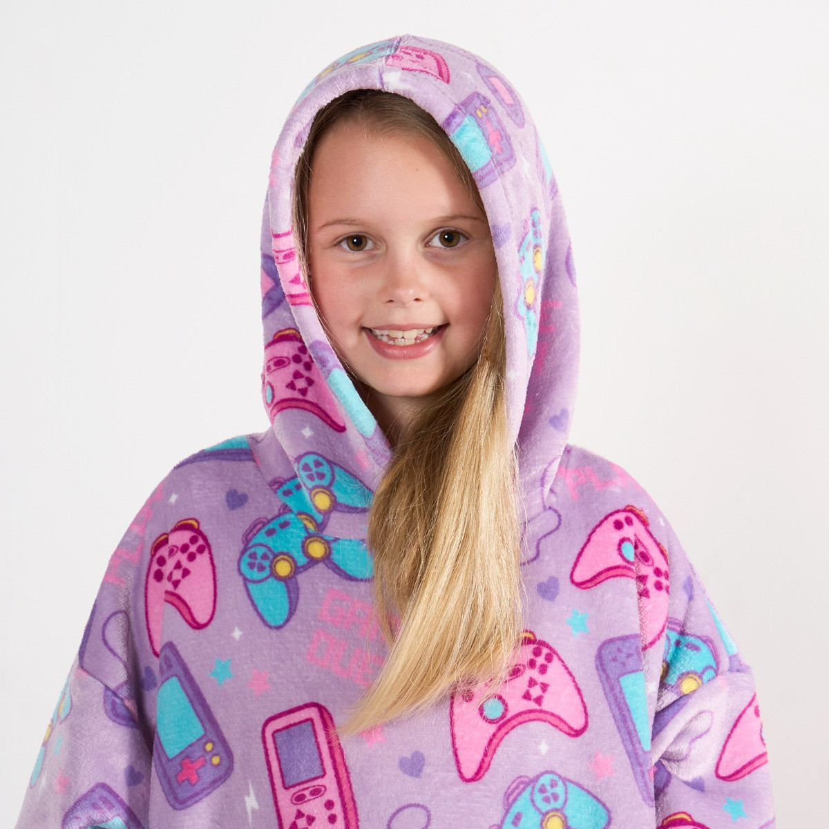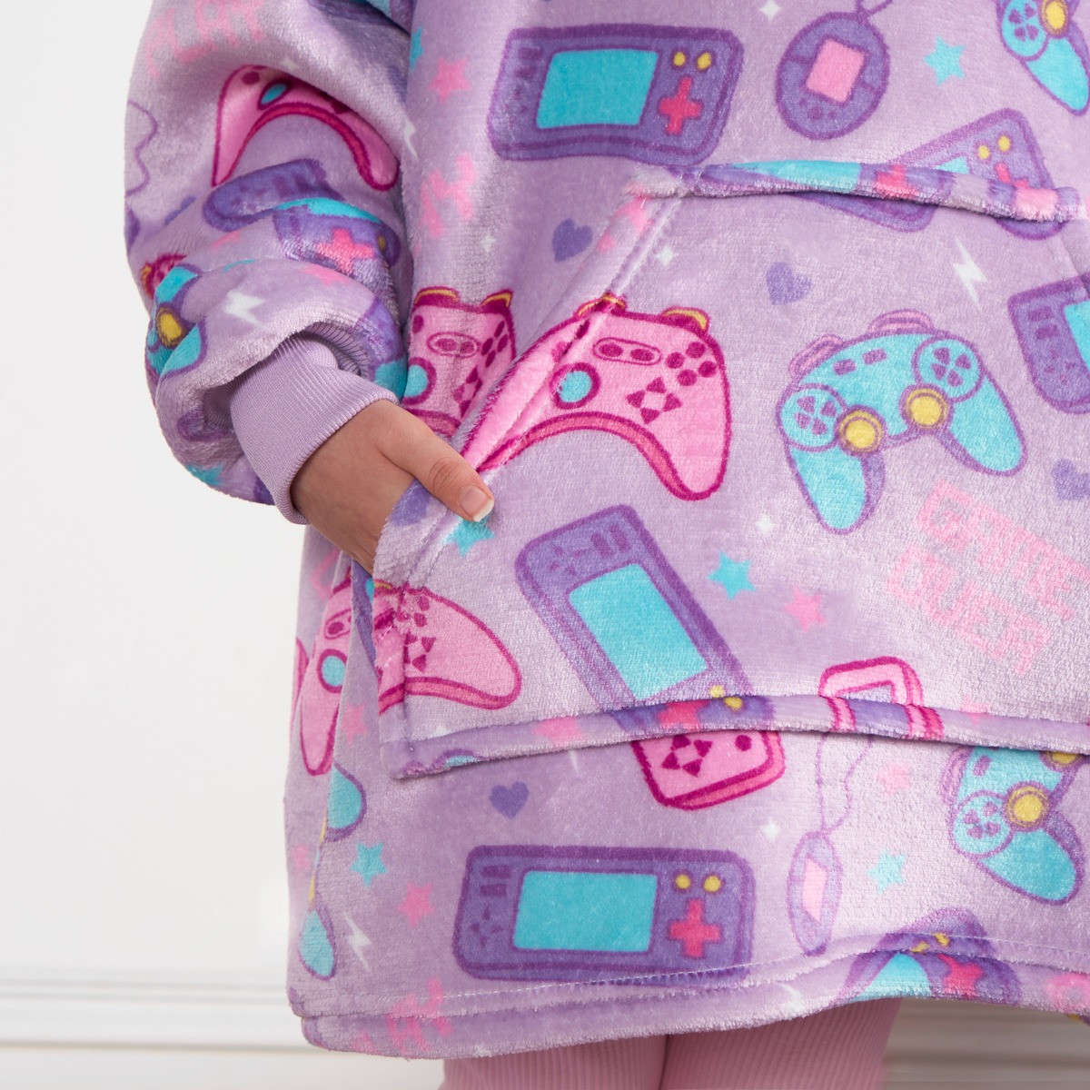 OHS Kids Gaming Print Hoodie Blanket - Lilac