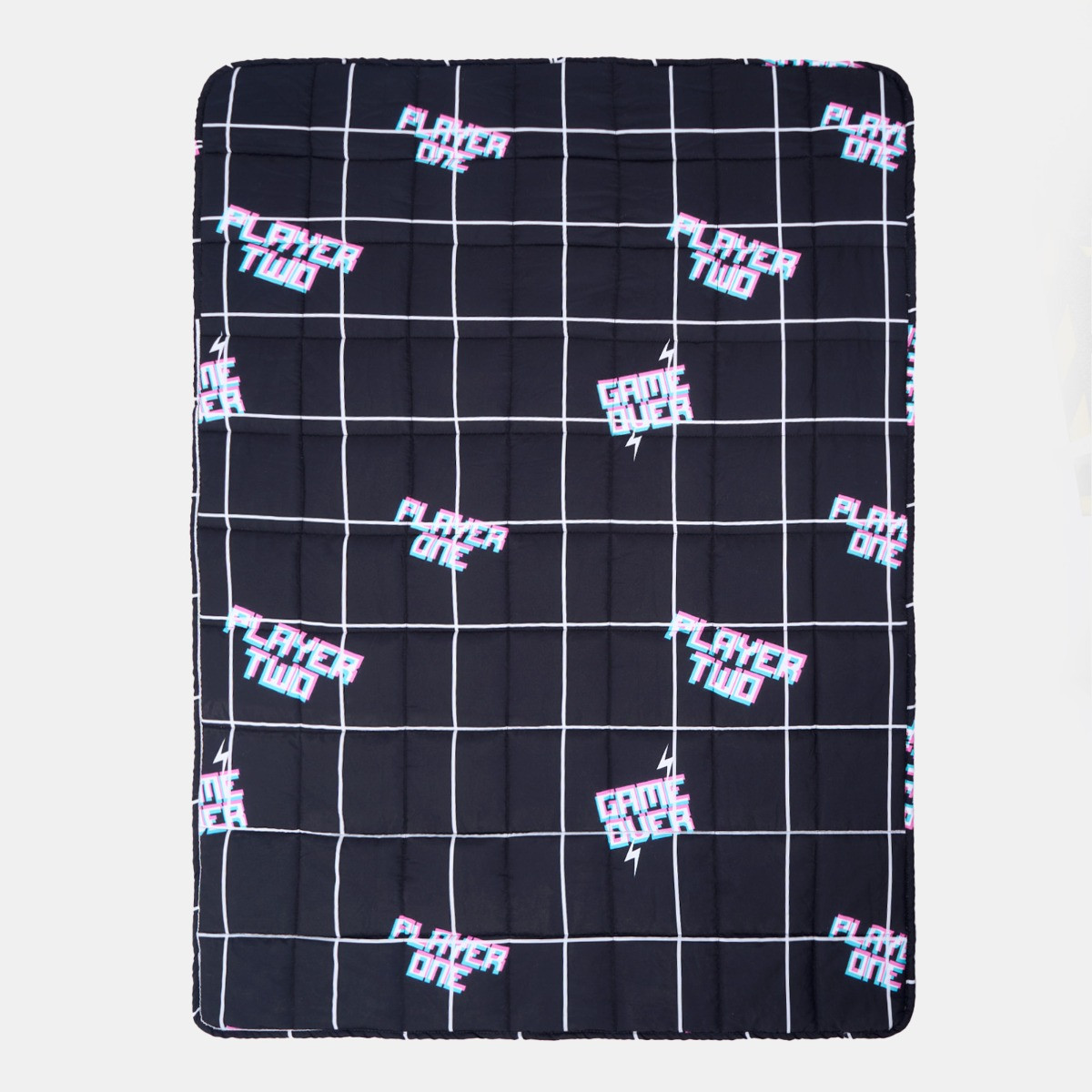 The OHS Kids Gaming Weighted Blanket in Black is designed to offer comfort, relaxation, and a fun aesthetic for young gamers. The blanket features a gaming-inspired design, often with motifs such as controllers, game icons, or pixelated patterns, making it appealing to kids who love gaming. The black background with vibrant gaming-themed prints gives it a cool and trendy look. Specifically tailored for kids, the blanket is sized to fit a child's bed and body comfortably. The weight is chosen to provide the right amount of pressure without being too heavy, making it suitable for children.