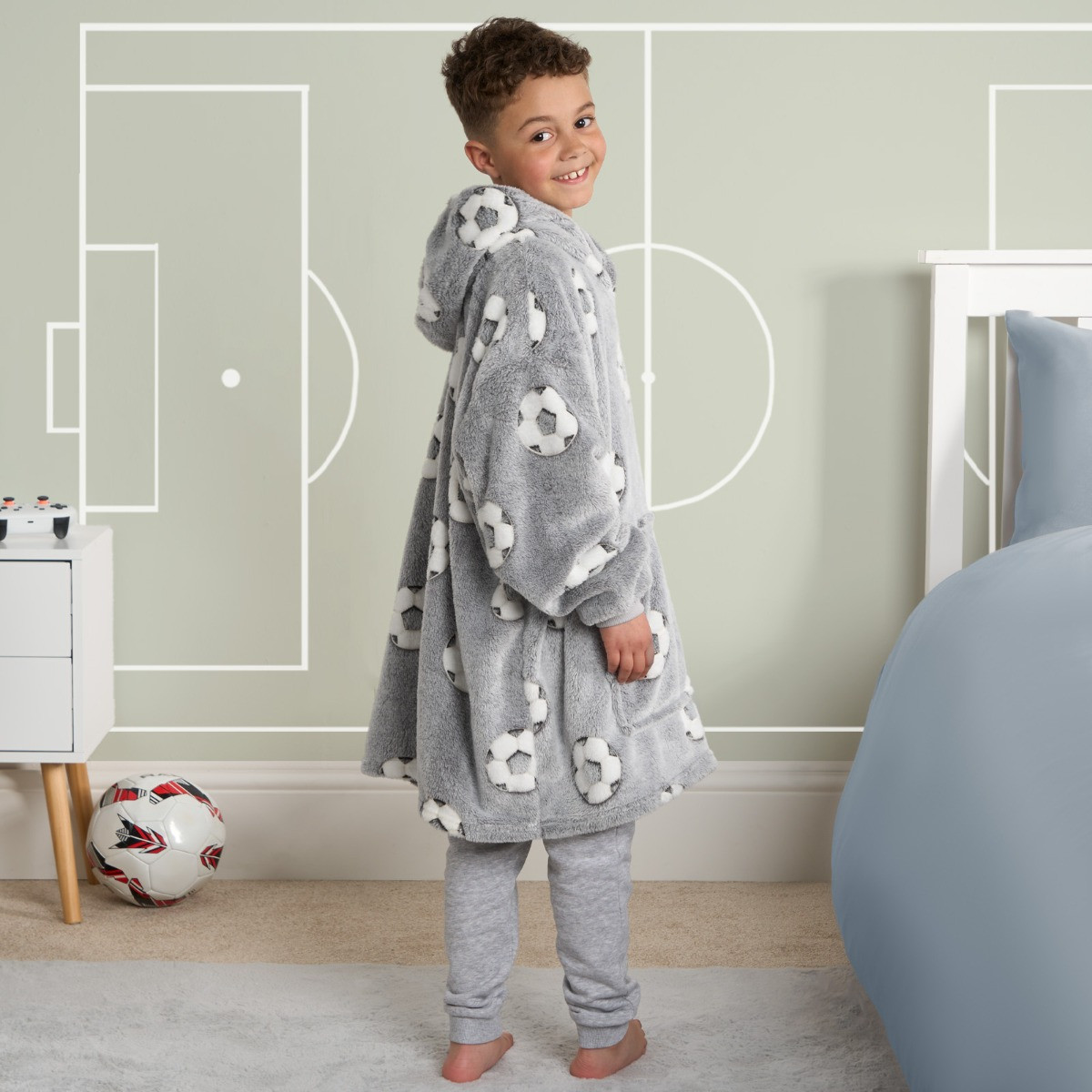 OHS Kids Glow In The Dark Football Hoodie Blanket - Grey