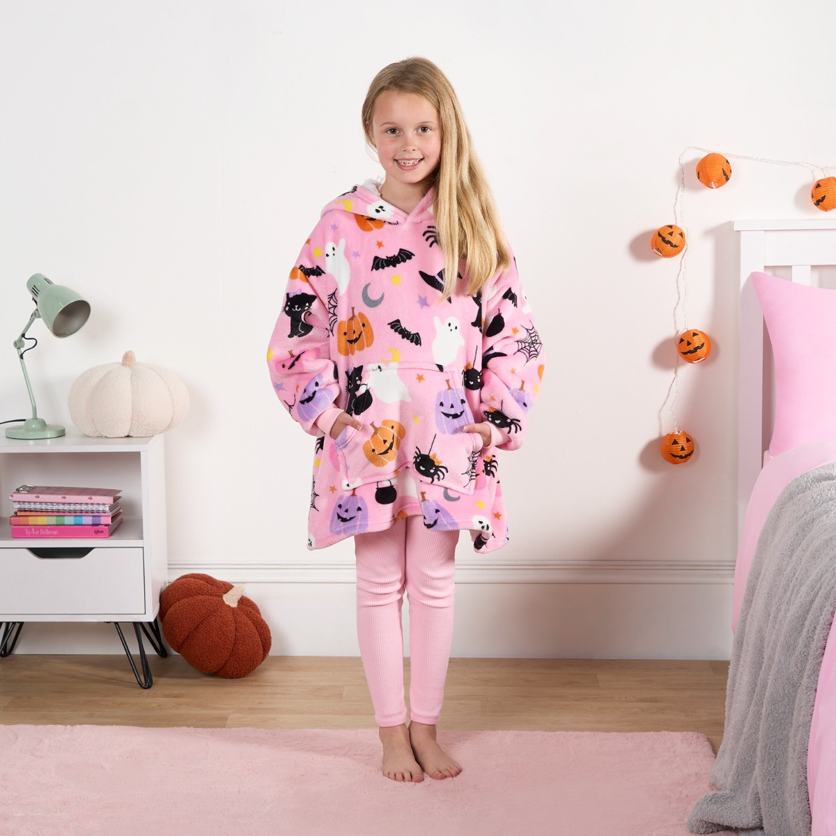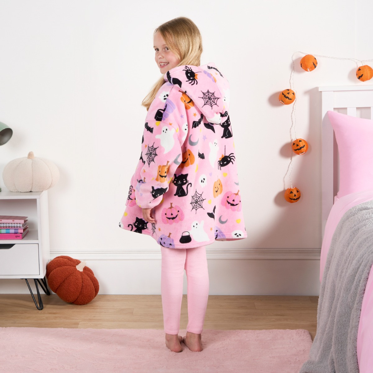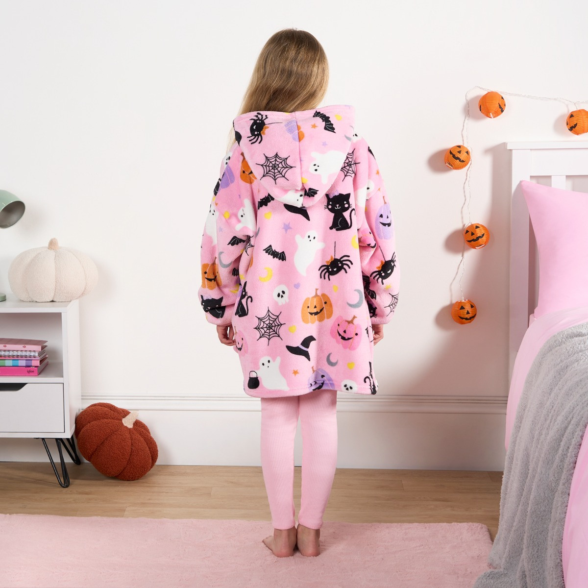 OHS Kids Halloween Pumpkin Print Hoodie Blanket - Pink