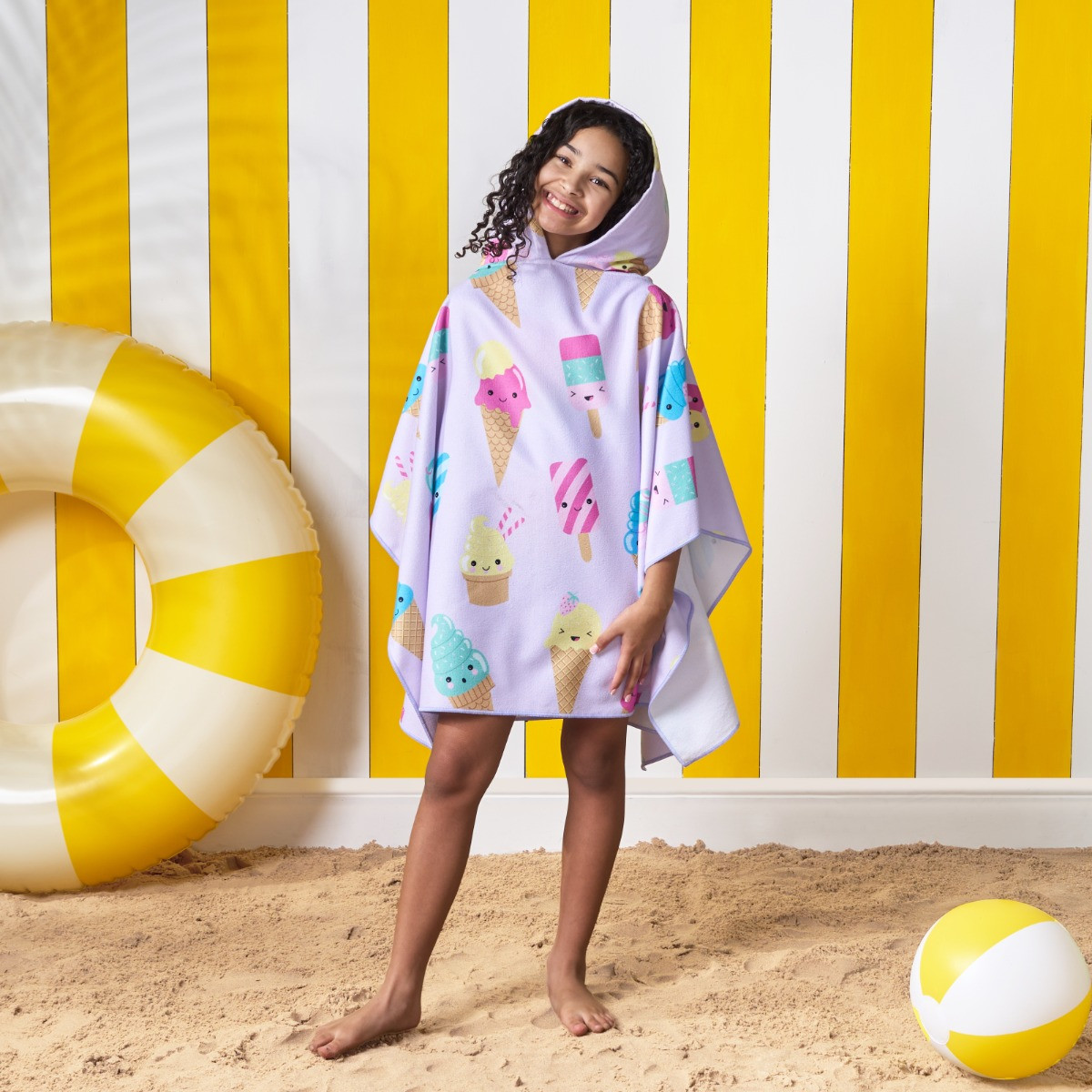 OHS Kids Ice Cream Print Poncho Towel - Lilac