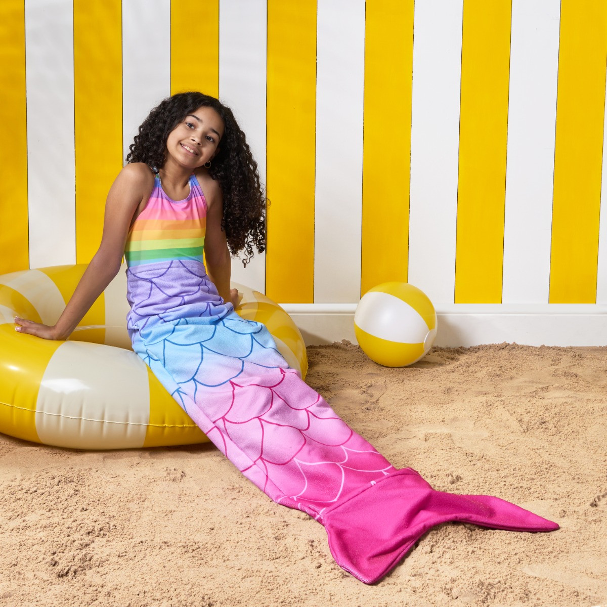 OHS Kids Mermaid Tail Ombre Wearable Beach Towel - Multi