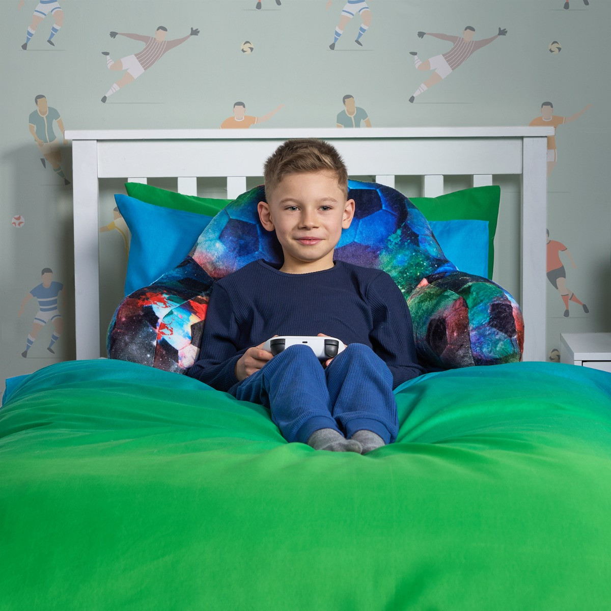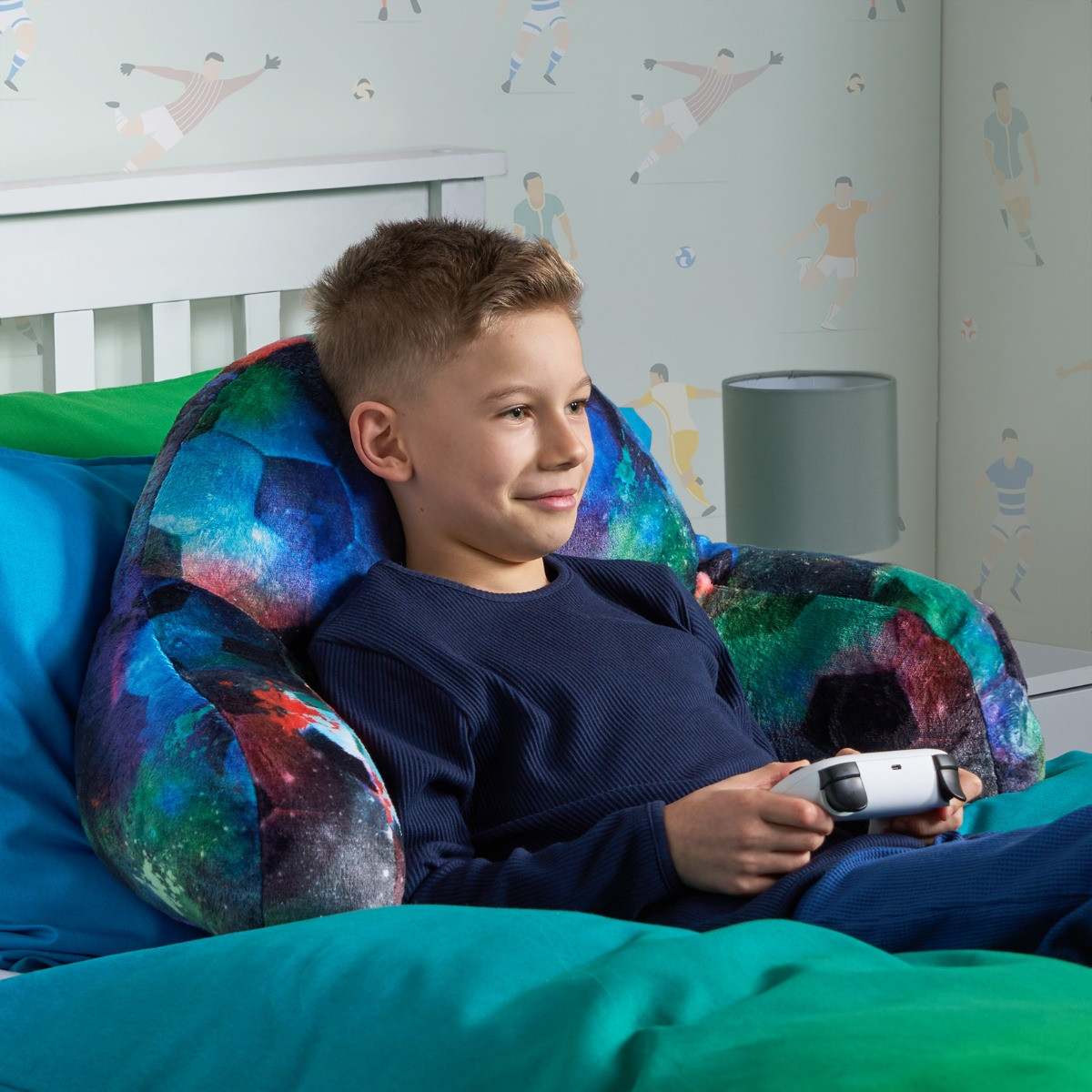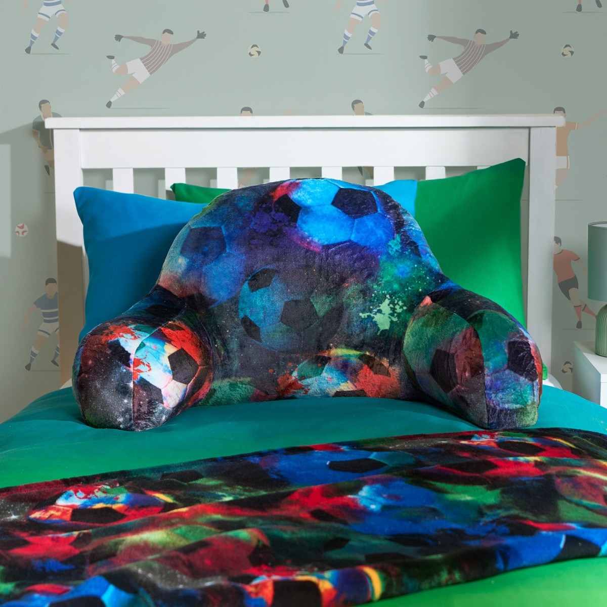 Introducing the OHS Kids Football Fleece Cuddle Cushion, a vibrant, cosy addition to any child's room. This vibrant cushion features sporty, eye-catching neon motifs to invigorate your child's passion for football. Perfect for use in bed or on chairs, it provides a cosy spot for reading, relaxing, or gaming. Crafted from soft, plush fleece and generously filled, it offers a cuddly embrace that your child will adore. Elevate your child's lounge spot with the OHS Kids Neon Football Fleece Cuddle Cushion, combining style and comfort for endless enjoyment.