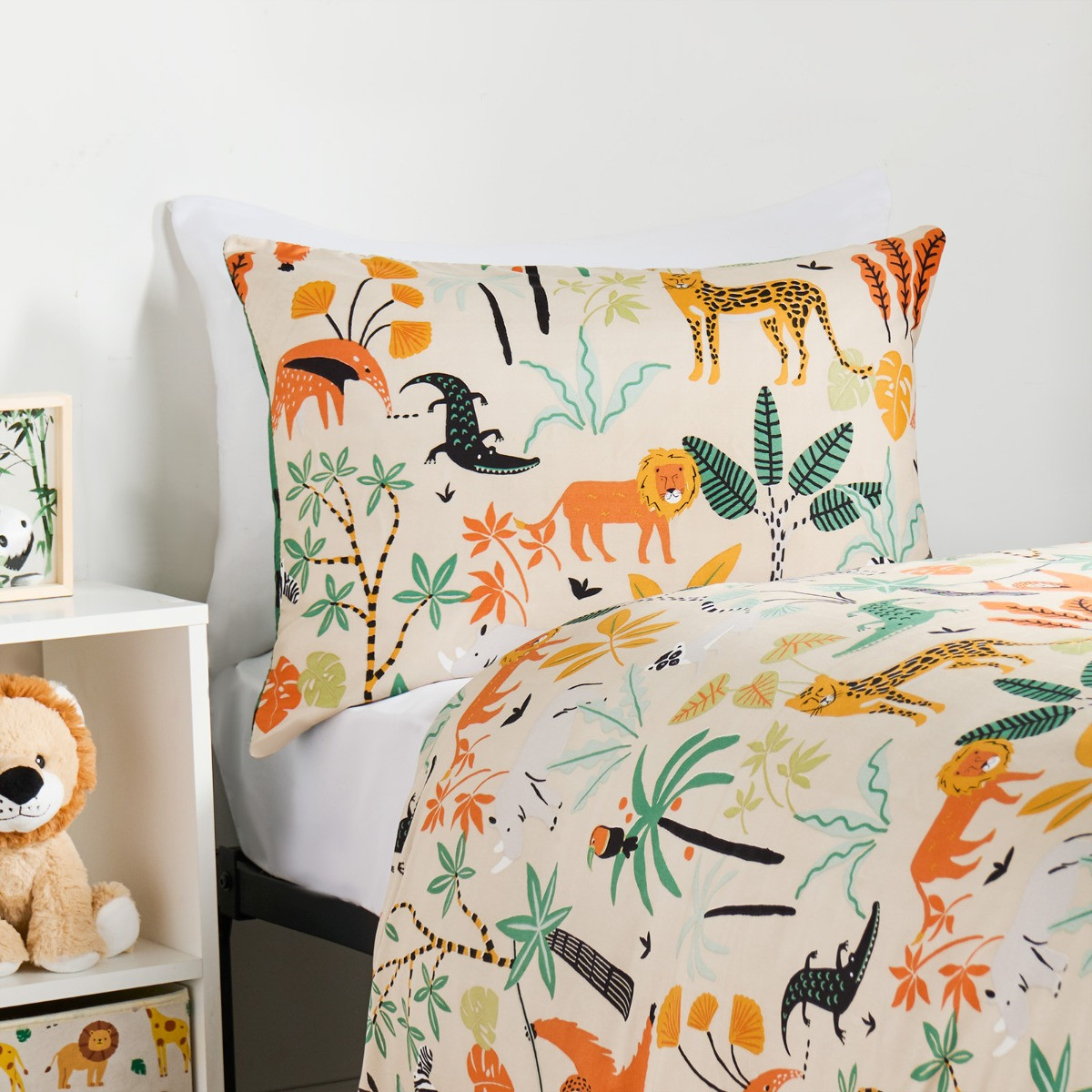 OHS Kids Safari Print Reversible Duvet Cover Set - Natural/Green