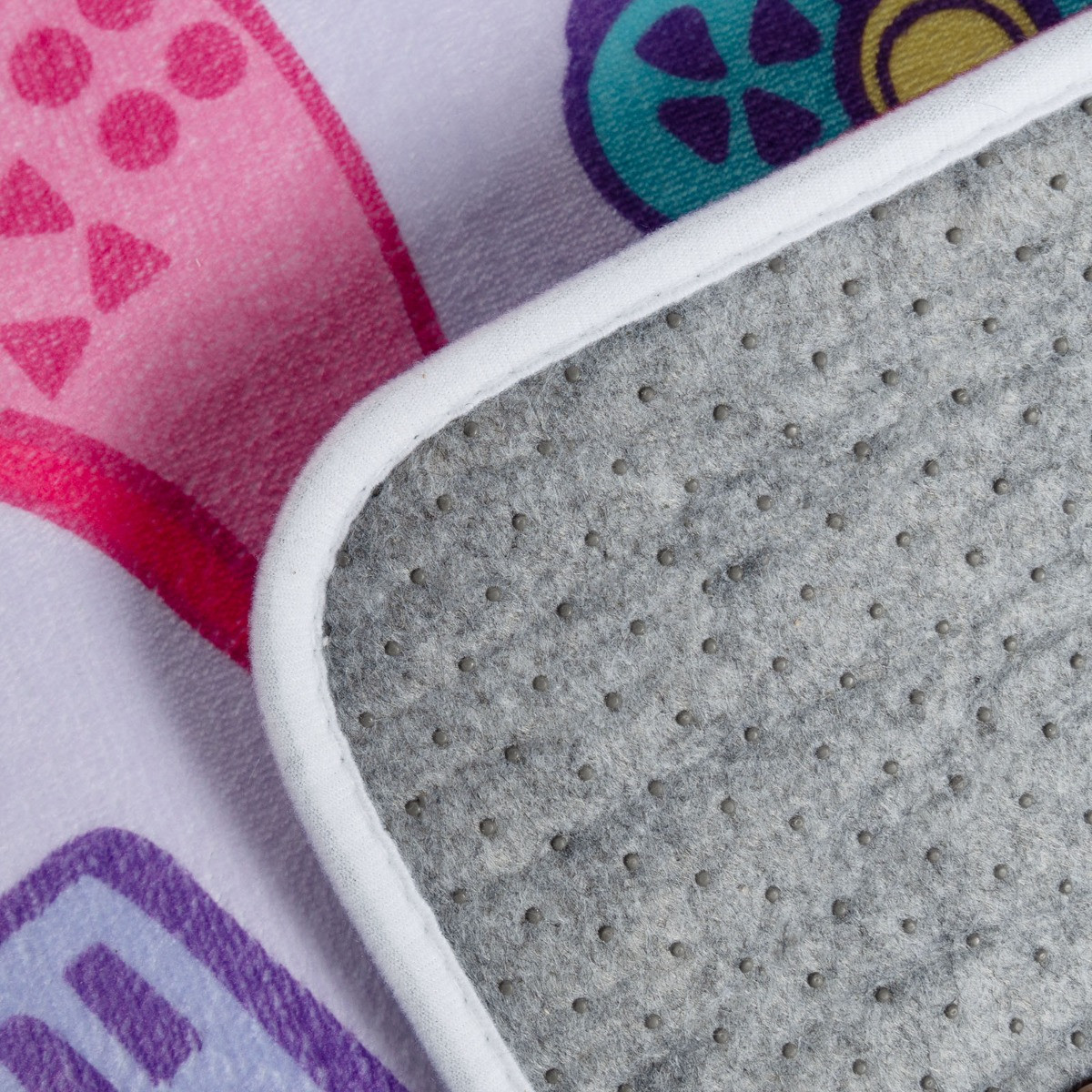 Create a dreamy and playful space for your child with the OHS Kids Supersoft Gaming Rug in Lilac. This charming rug combines a fun gaming theme with a soothing lilac color, providing both comfort and style to enhance any play or gaming area. The rug features a vibrant and engaging gaming-inspired design that appeals to kids. The graphic elements and patterns are designed to spark imagination and excitement during playtime or gaming sessions. Complete with anti-slip backing.