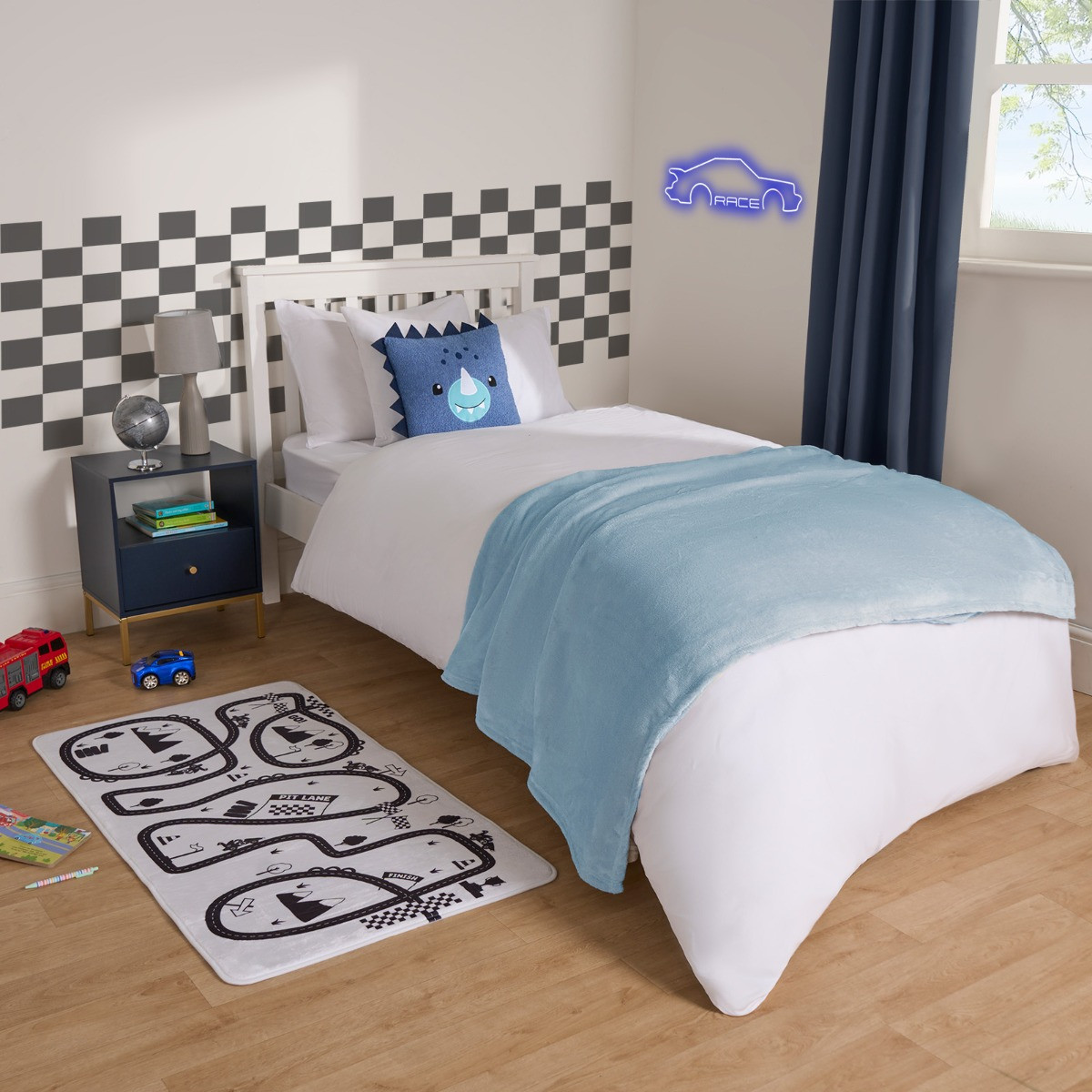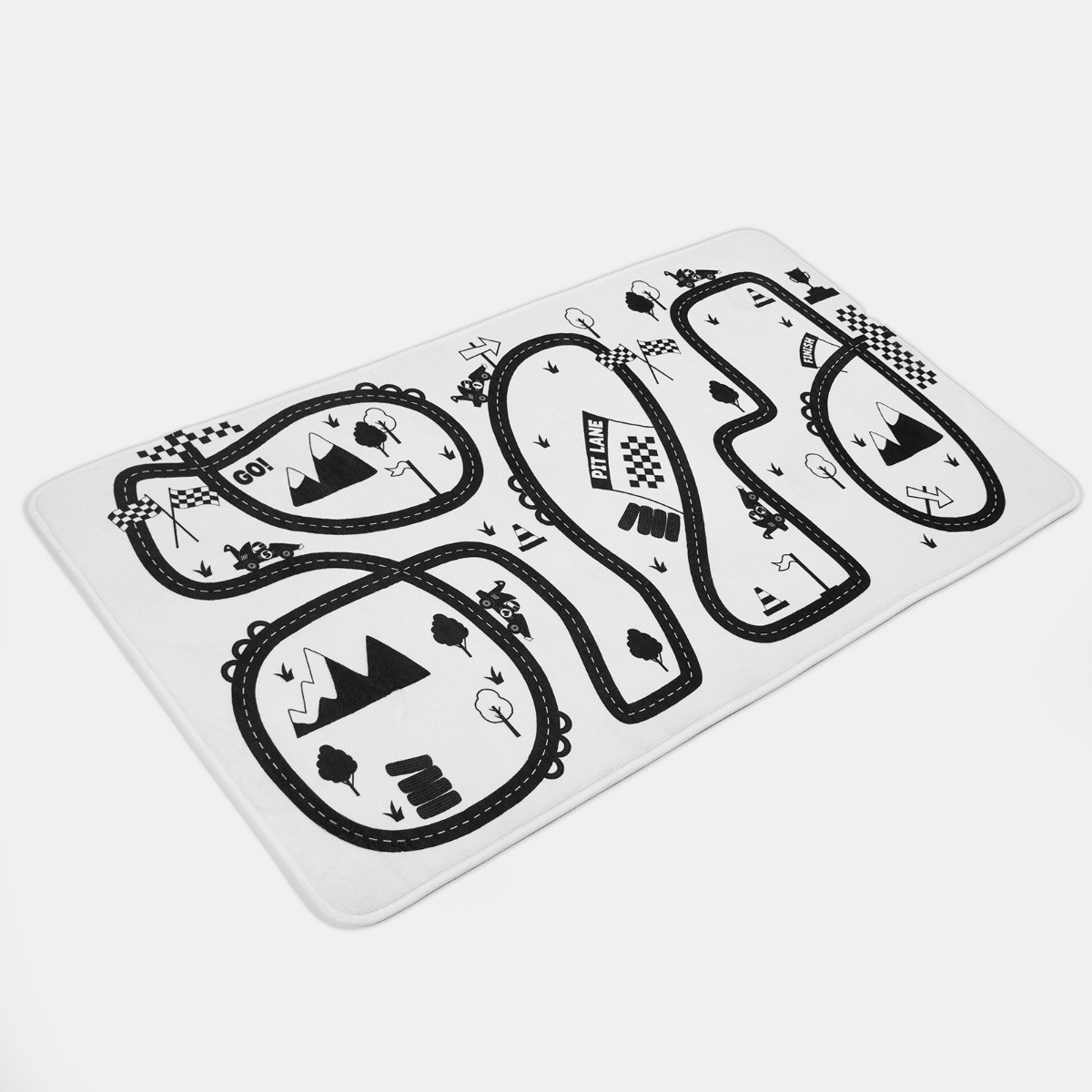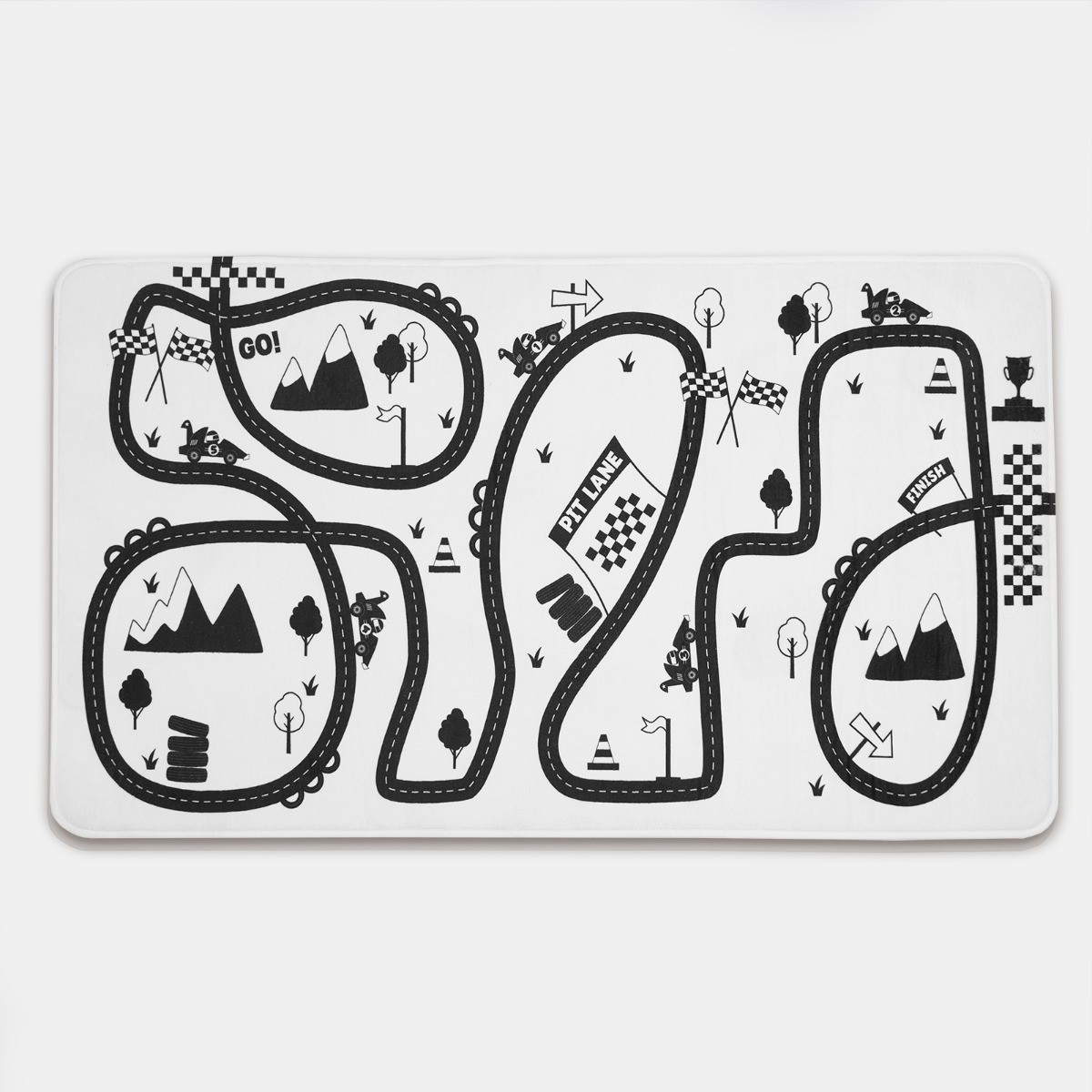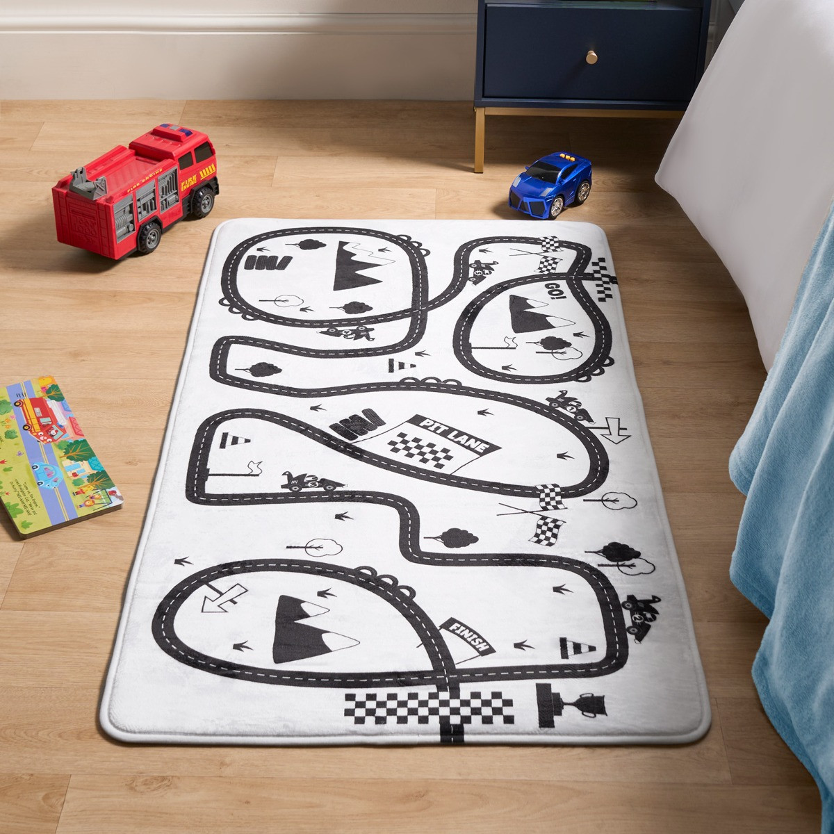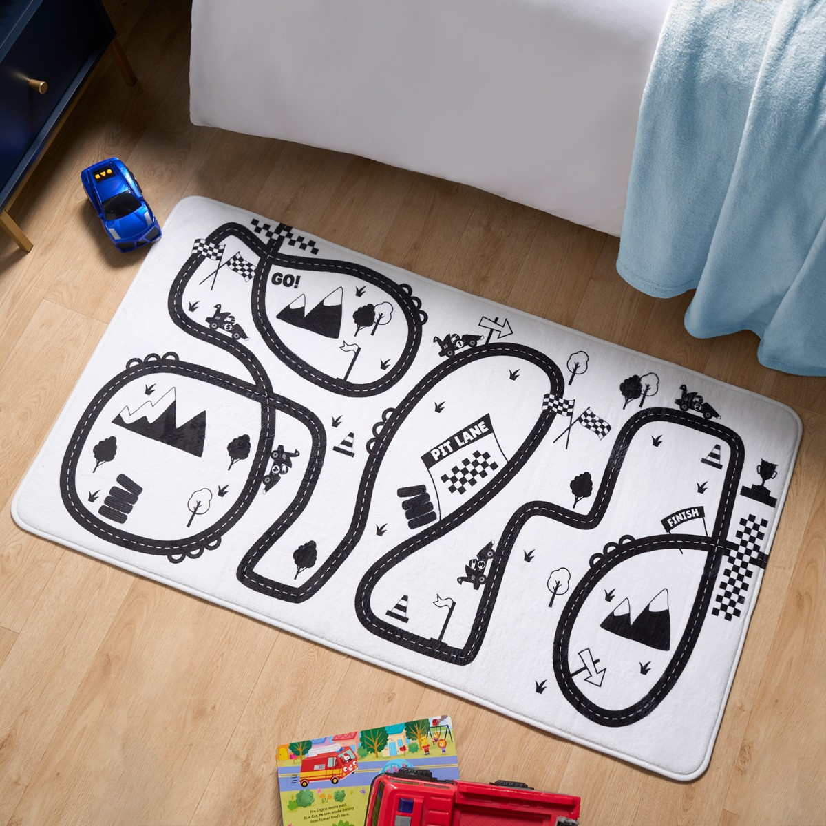 OHS Kids Supersoft Racing Track Printed Rug - Monochrome