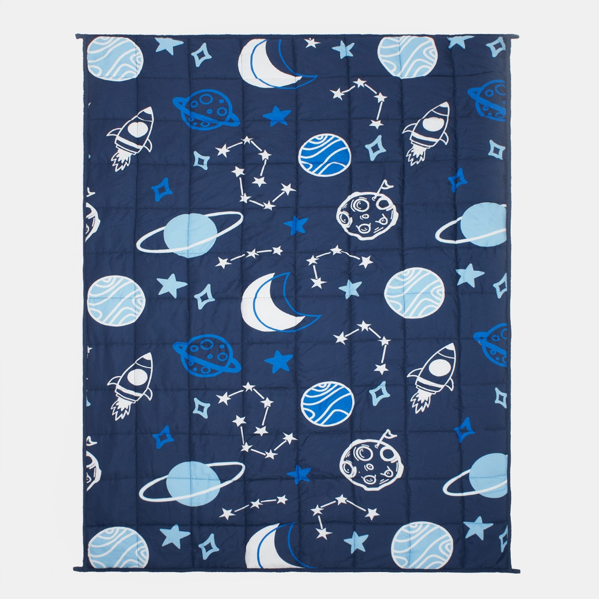OHS Kids Teddy Fleece Space Weighted Blanket, Navy - 3kg
