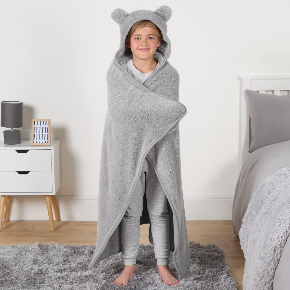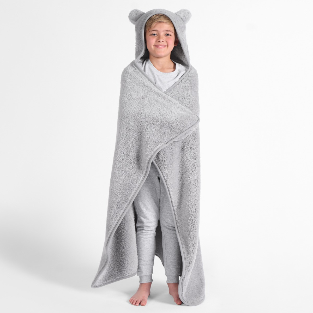 Wrap your little ones in the ultimate blend of comfort and coziness with the Kids Teddy Hooded Blanket. Perfect for chilly nights and snuggly days, this blanket combines the warmth of a plush teddy bear with the practicality of a hooded design, ensuring that your child stays both warm and entertained. Featuring an irresistibly cute teddy bear theme, this hooded blanket showcases a friendly teddy bear face complete with ears, making it a delightful choice for kids. The plush, teddy bear design adds an element of fun and whimsy, perfect for bedtime or playtime.