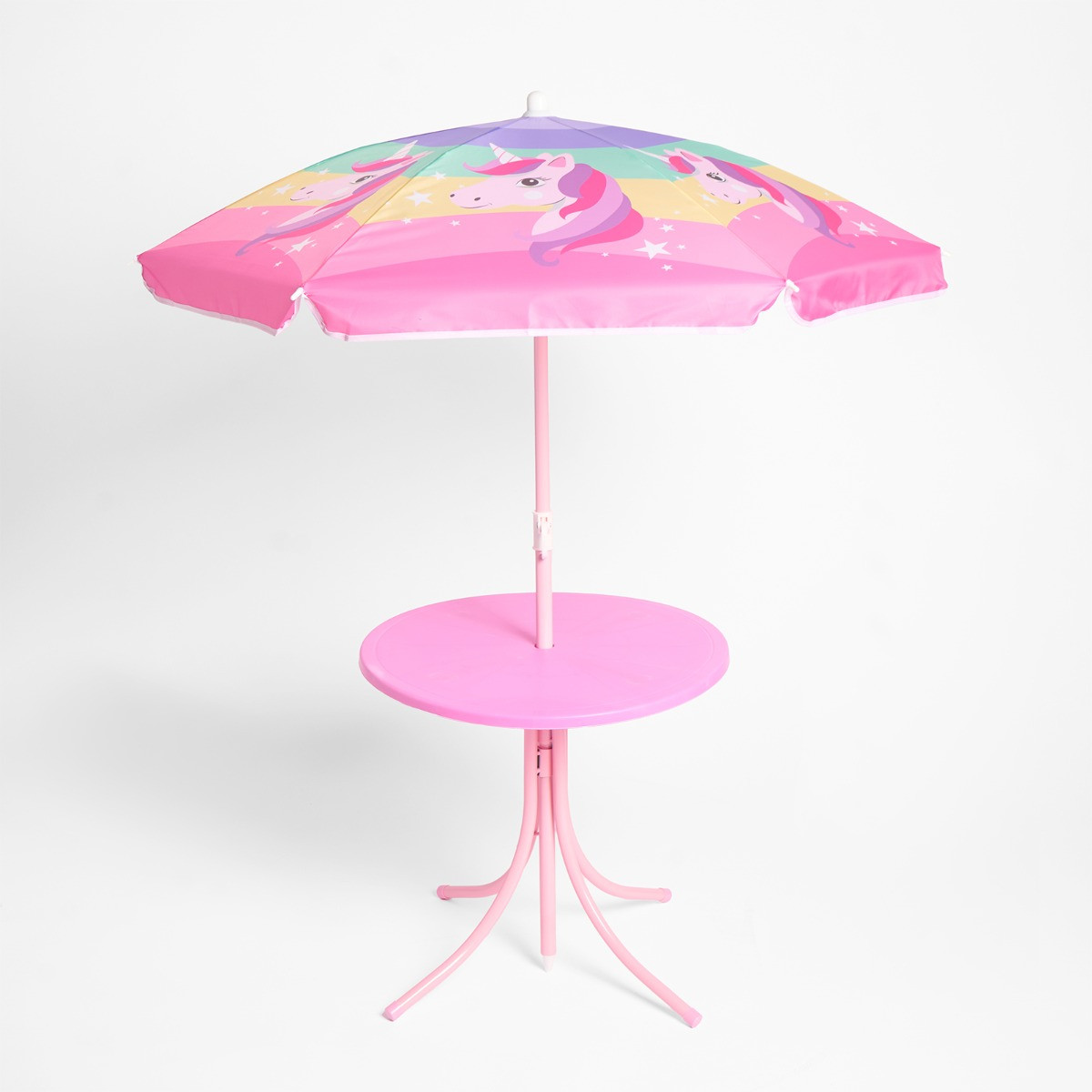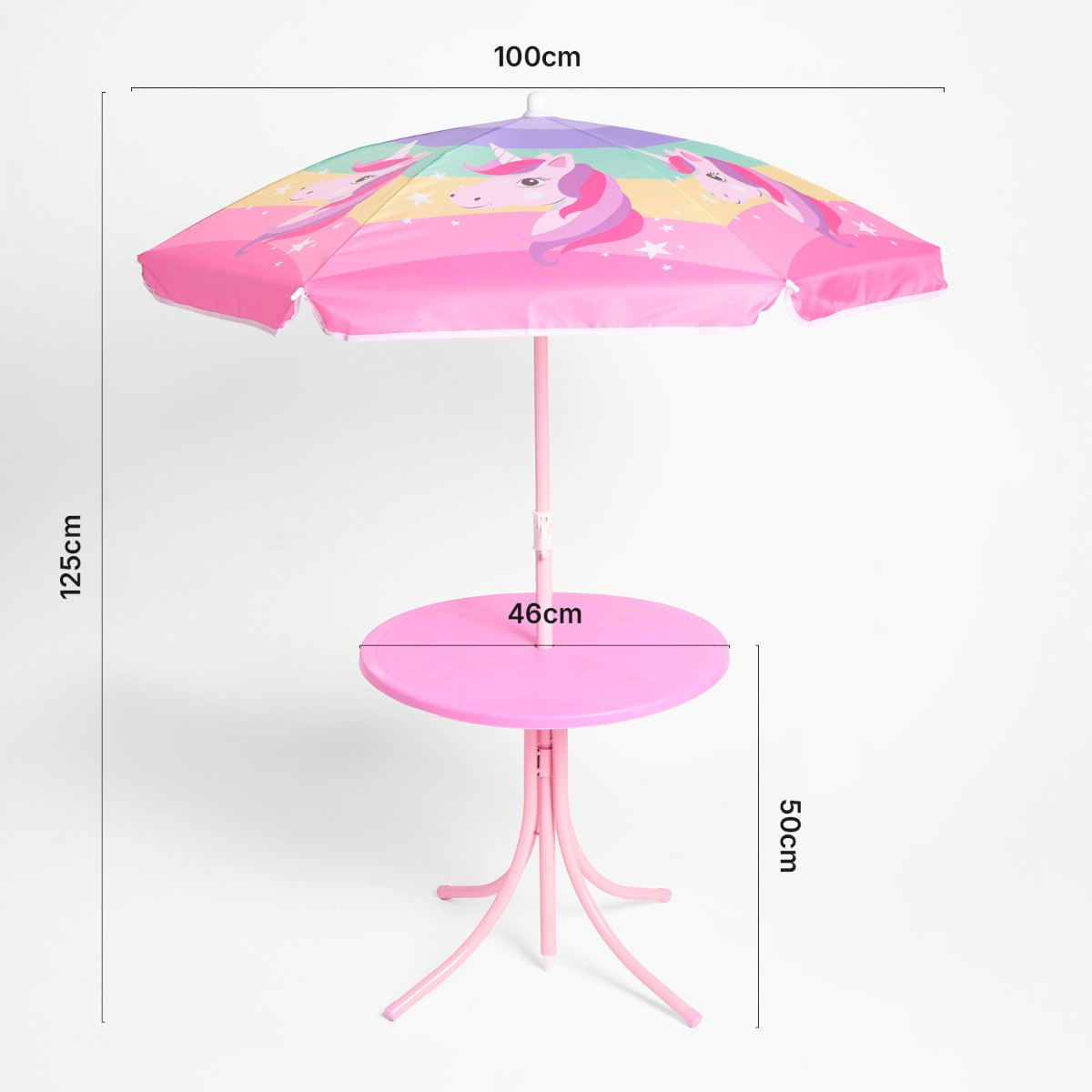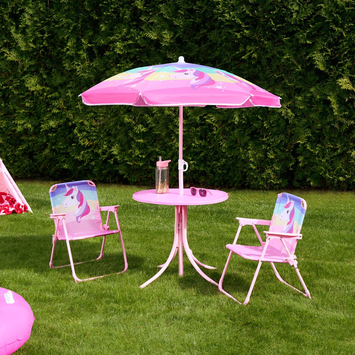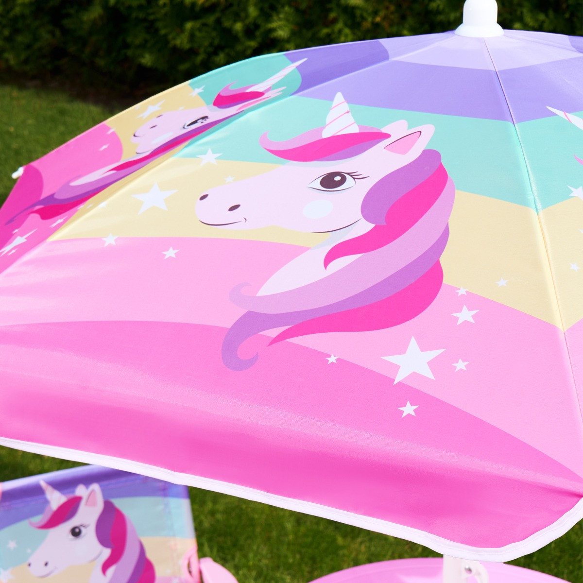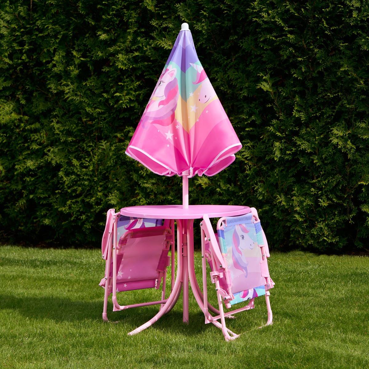 OHS Kids Unicorn Print Bistro Set with Parasol - Pink