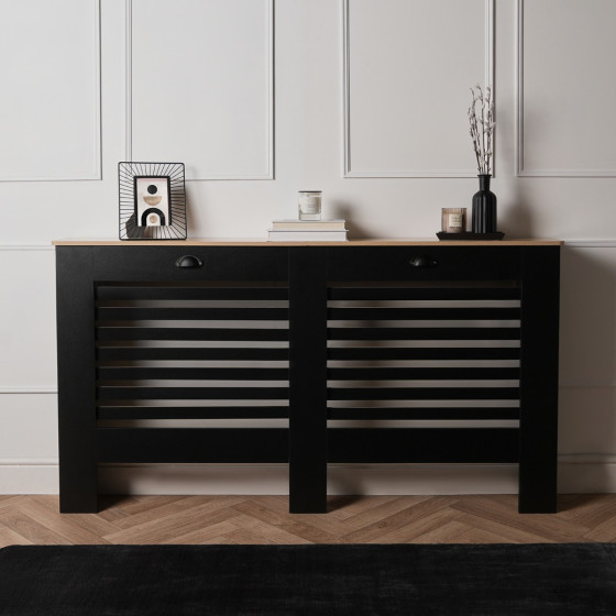 The OHS Wooden Radiator Cover in Black is a stylish and practical solution to enhance your home's interior while maximizing space and safety. Featuring a sleek and classic black finish, this radiator cover seamlessly blends with any decor style, from modern to traditional. The clean lines and minimalist design add a touch of sophistication to your living space.