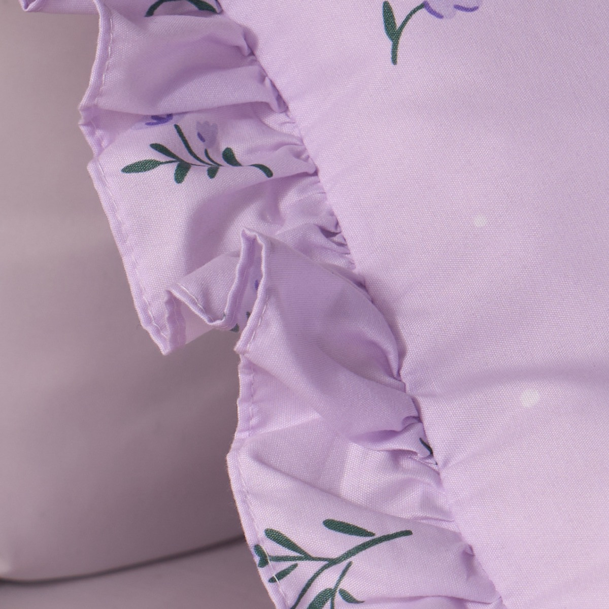 OHS Lavender Floral Frill Edge Duvet Cover Set, Lilac - Double