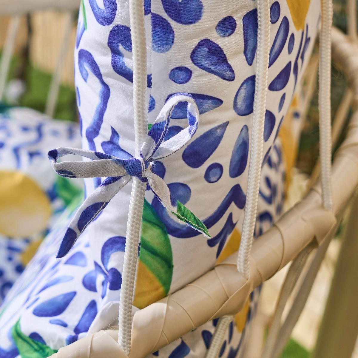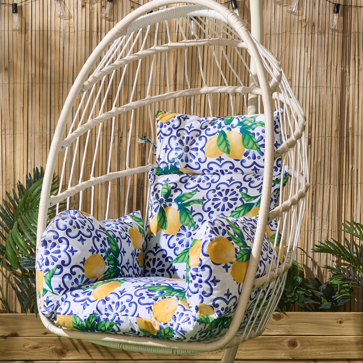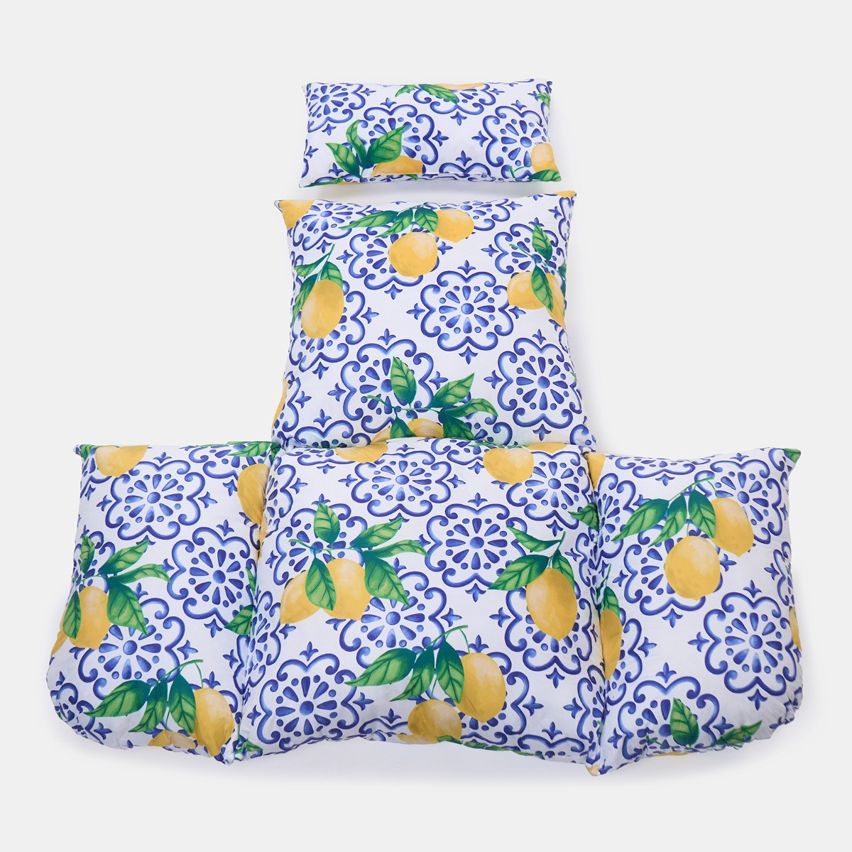 OHS Lemon Print Egg Chair Cushion with Headrest - White/Blue