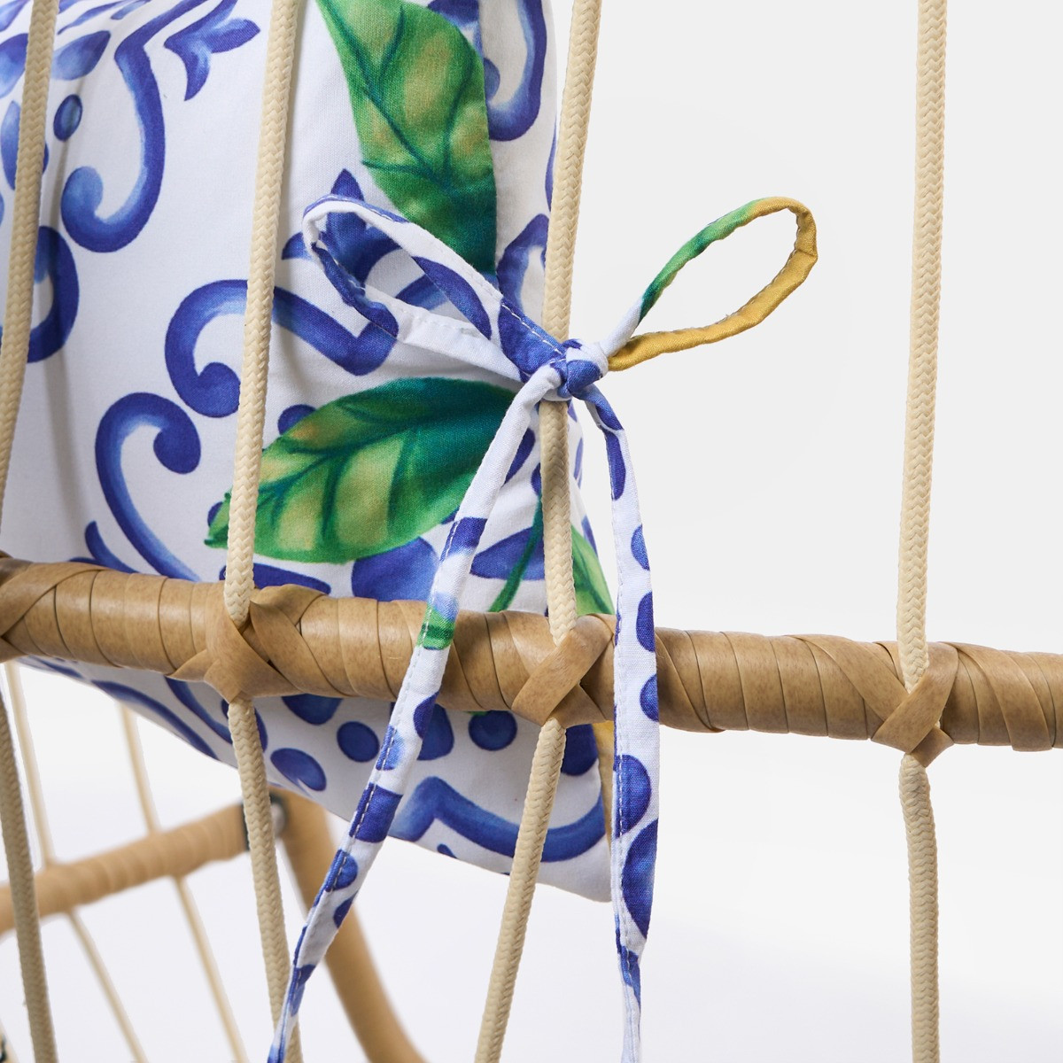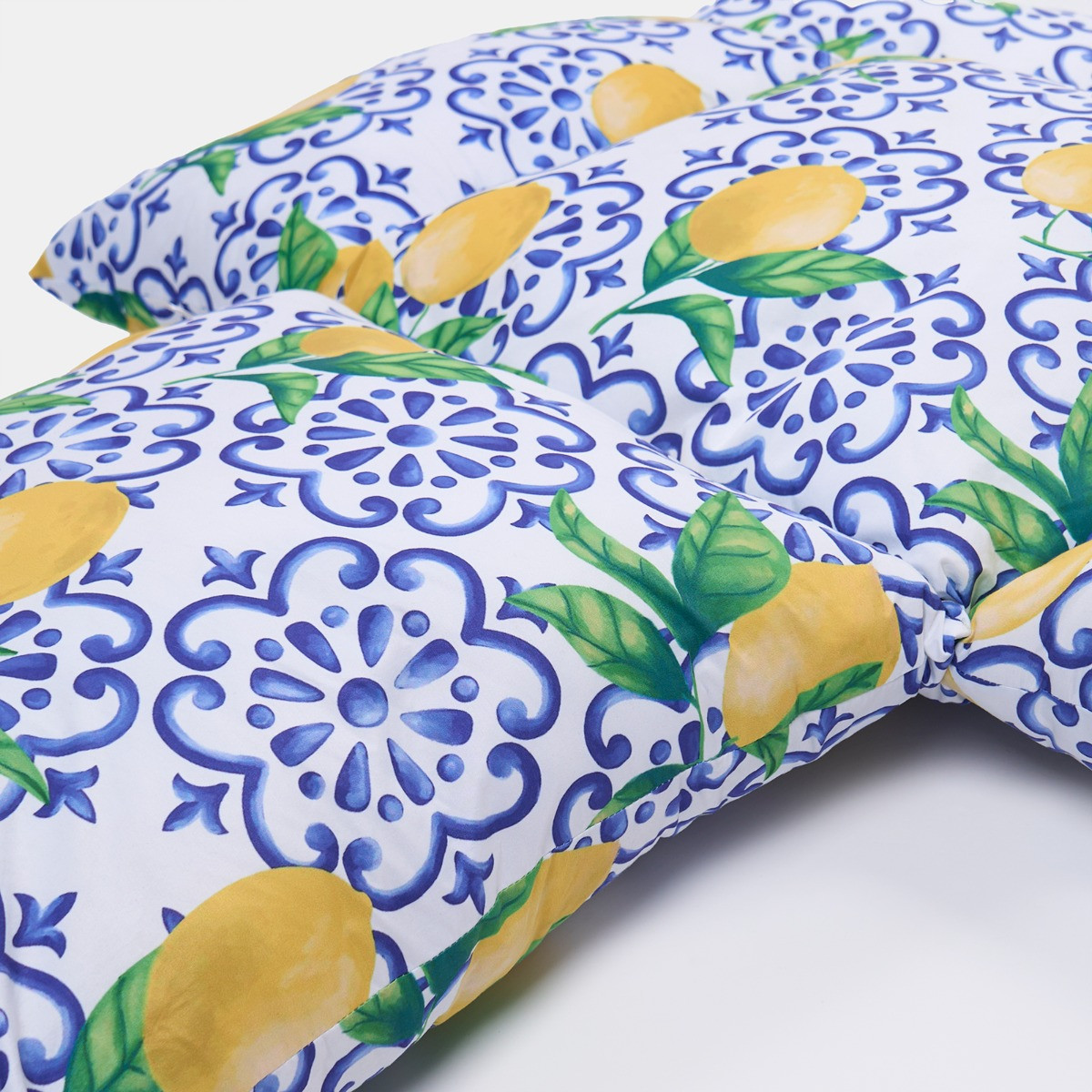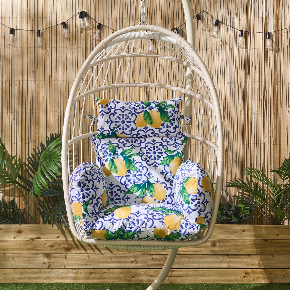OHS Lemon Print Egg Chair Cushion with Headrest - White/Blue