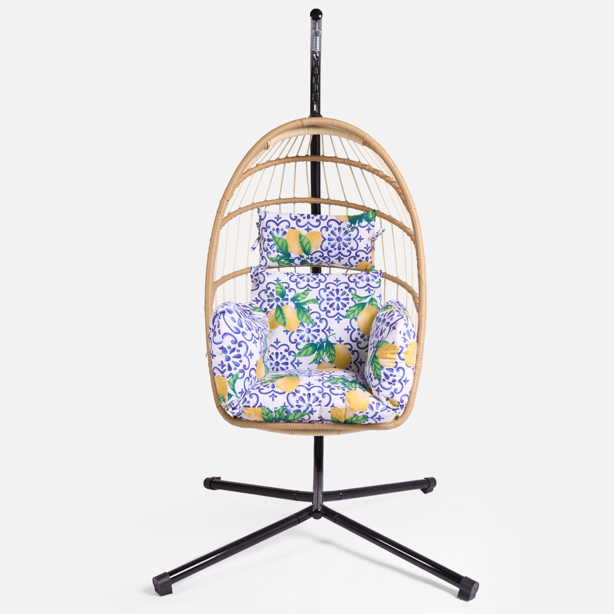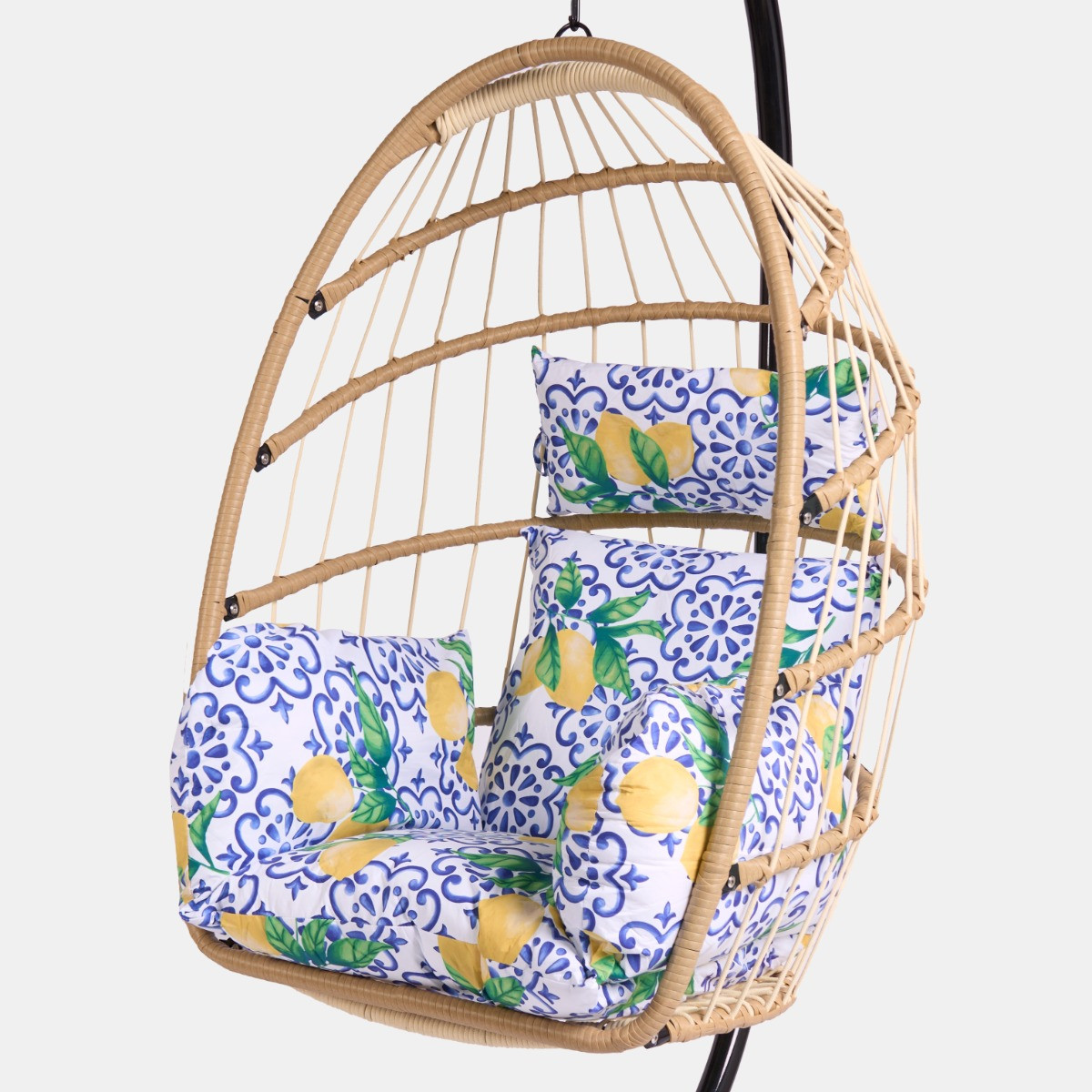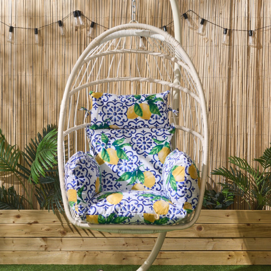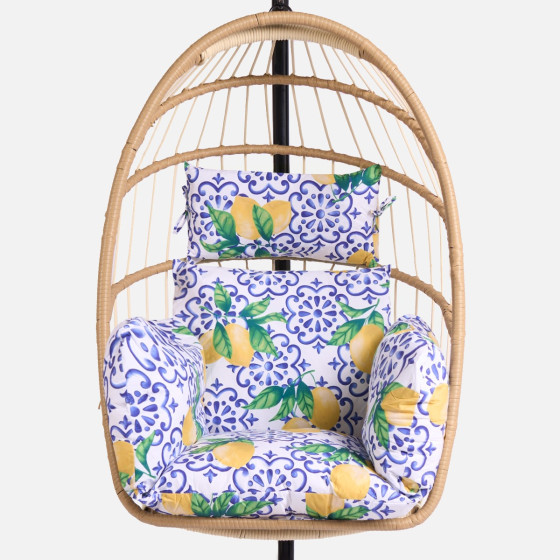 The OHS Lemon Print Egg Chair Cushion with Headrest in a stylish design offers ultimate comfort and support for your egg chair. The plush padding ensures a soft, relaxing seating experience, while the vintage pattern adds a unique touch to your indoor or outdoor space. Designed to fit perfectly with our OHS Foldable Hanging Egg Chair (and most other egg chairs), this cushion also includes a headrest for added comfort. For longevity, store the cushion in a dry, indoor place when not in use.