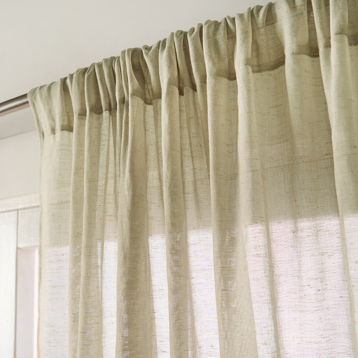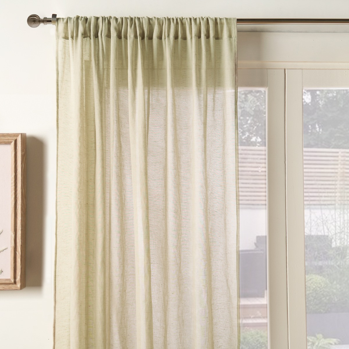 OHS Linen Look Slot Top Voile Curtains (Pair) - Sage