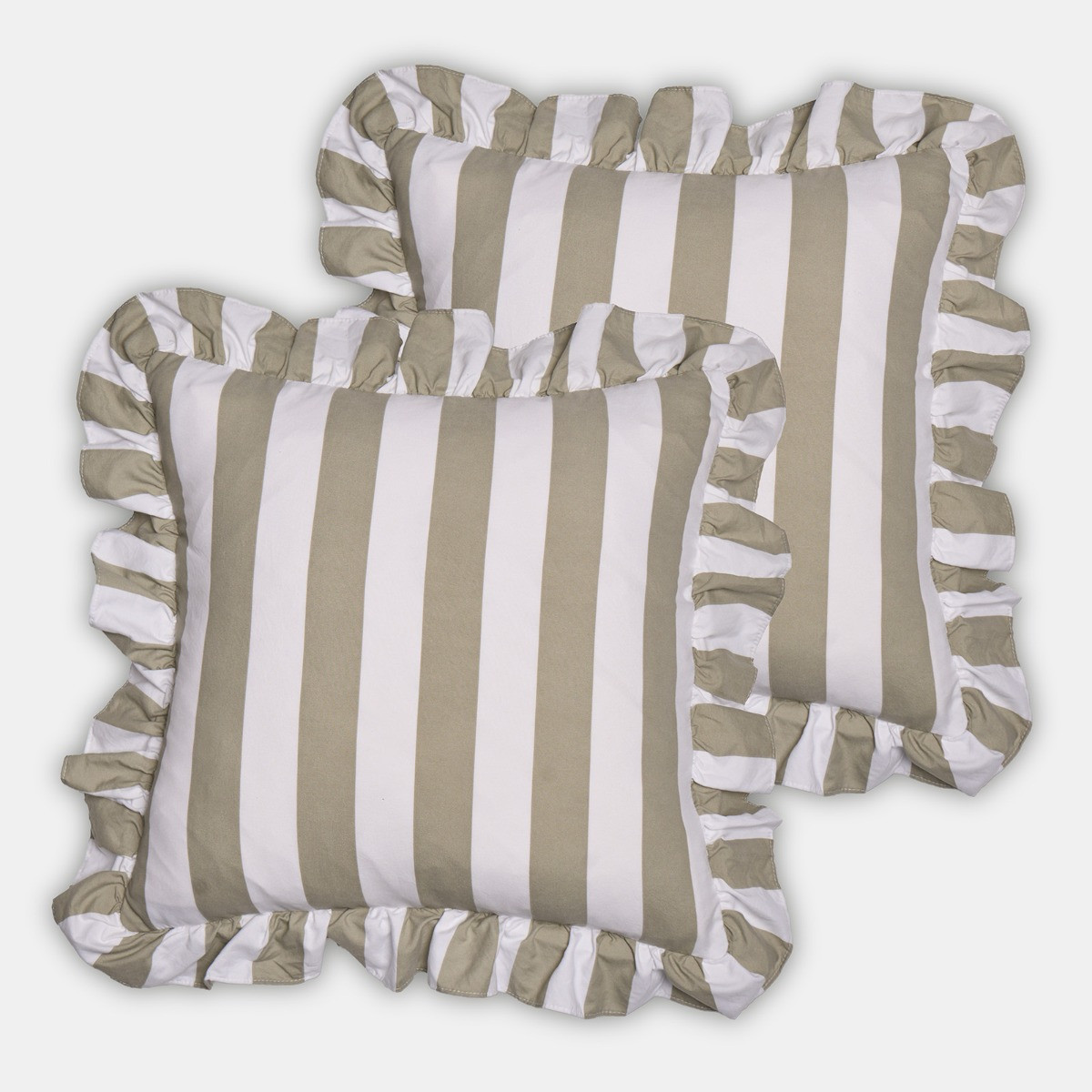 OHS Striped Frill Cushion Covers - Sage