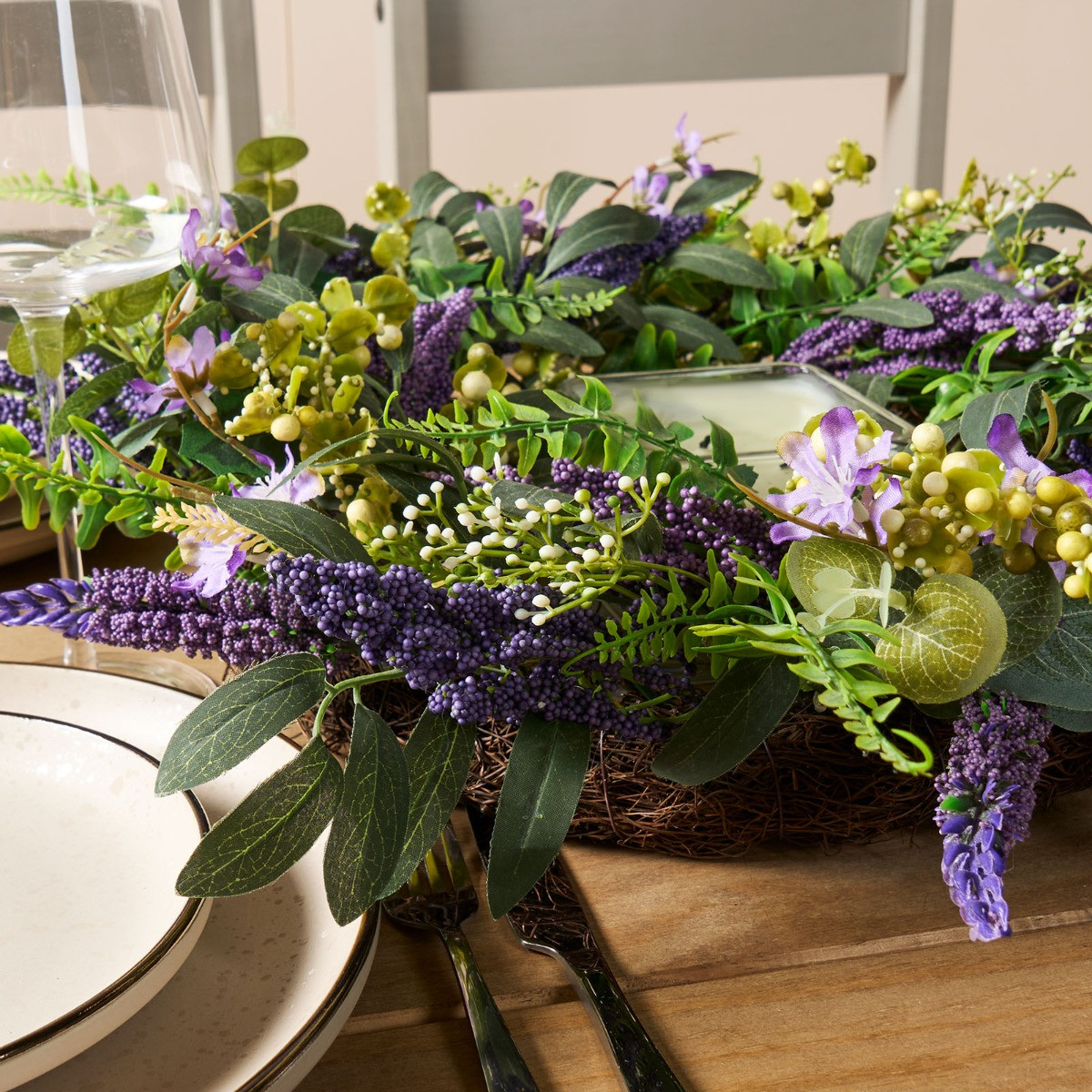 OHS Lush Lavender Wreath, Green/Purple - 50cm