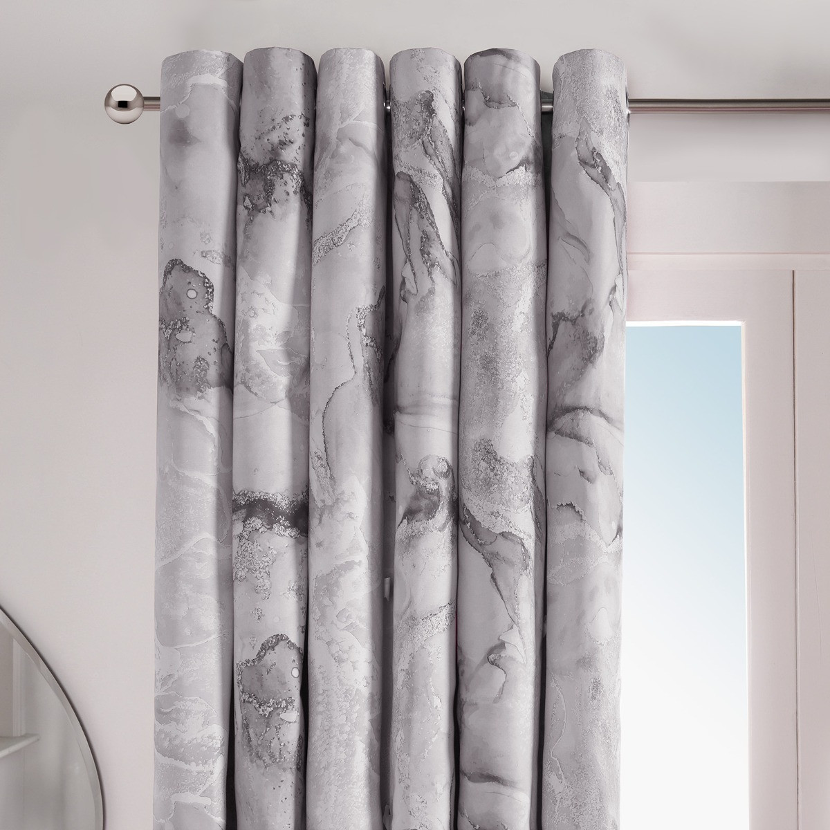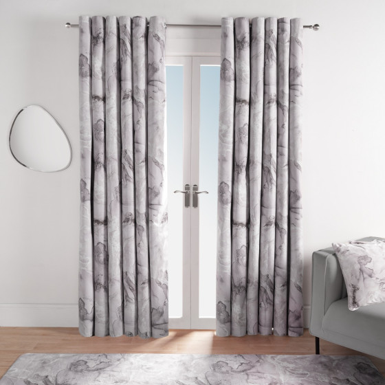 OHS Marble Print Essential Eyelet Blackout Curtains - Grey