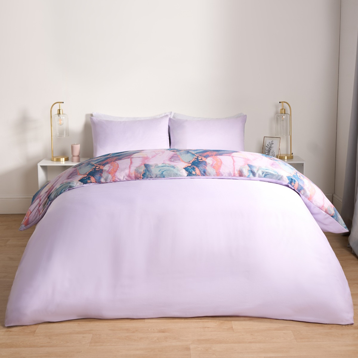 OHS Marble Print Duvet Set, Lilac/Blue - Double