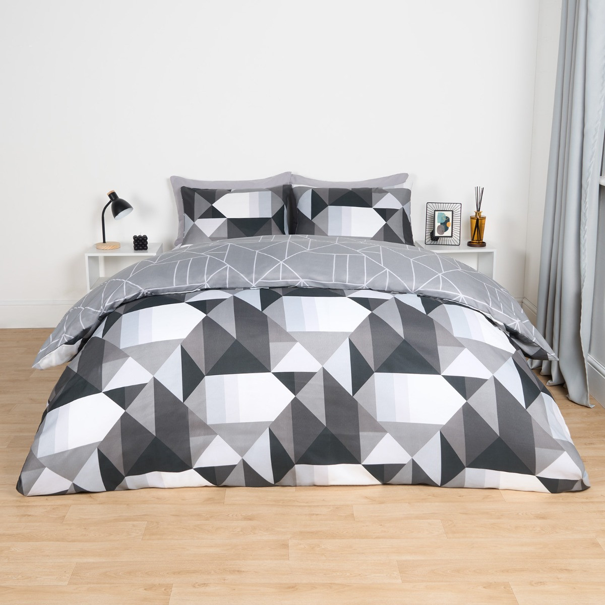 OHS Mason Retro Geometric Reversible Duvet Cover Set - Monochrome