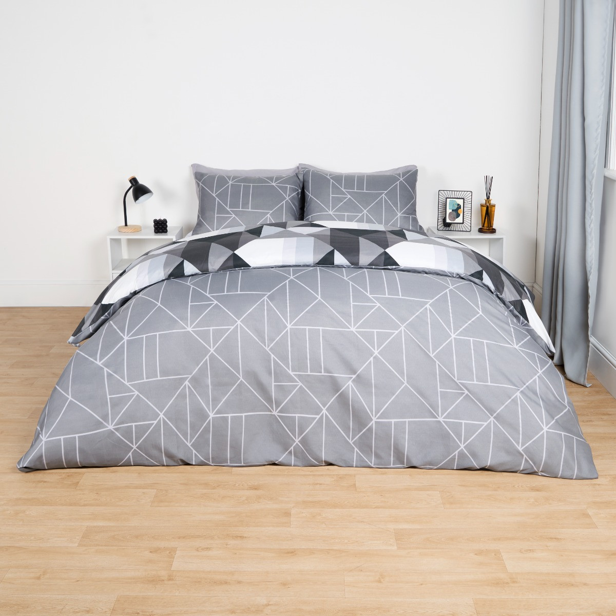 OHS Mason Retro Geometric Reversible Duvet Cover Set, Monochrome - Double