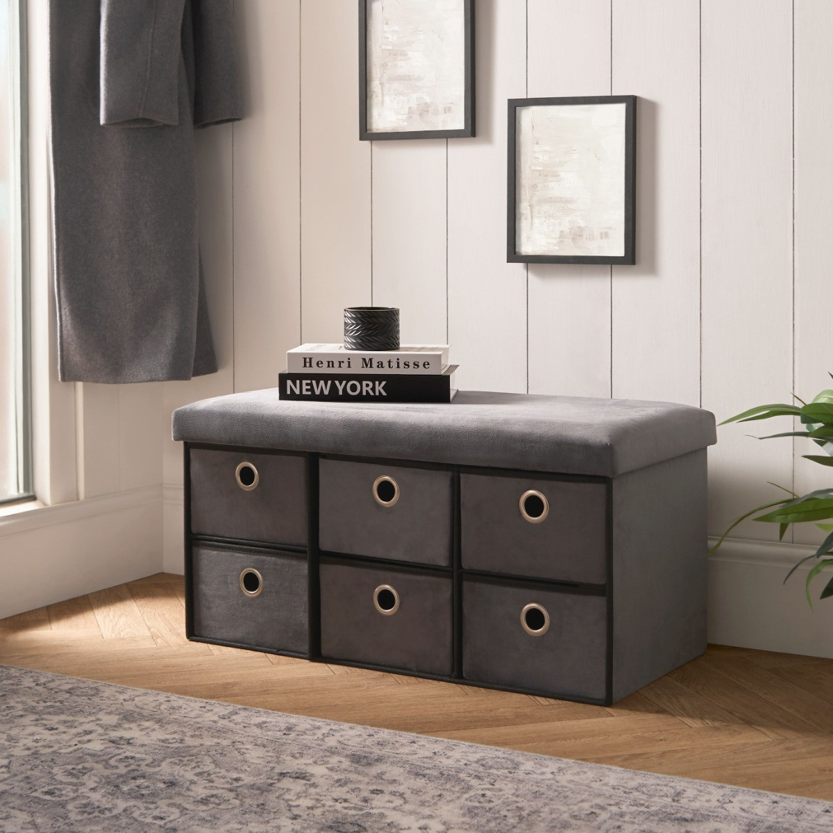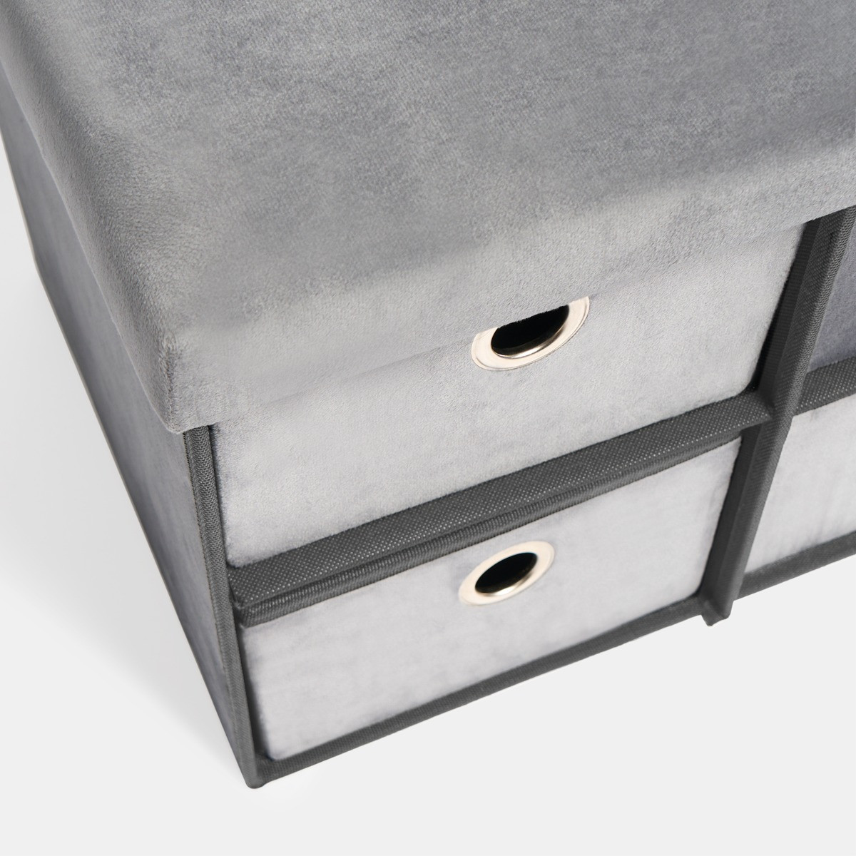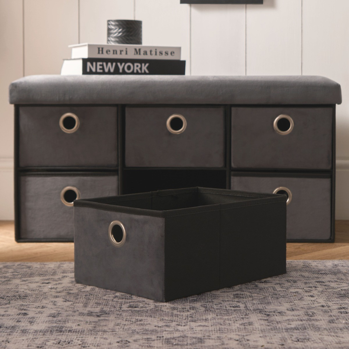 Bring style and functionality to your space with the OHS Matte Velvet 6-Drawer Storage Chest. This elegant piece, crafted in soft matte velvet, features six rectangular drawers, providing versatile storage that combines the appeal of a storage ottoman with the practicality of visible drawers. Perfect for keeping essentials organised and within reach, each drawer slides smoothly, making it ideal for storing clothing, toys, or daily accessories. Its sleek design fits seamlessly into bedrooms, living rooms, or any area in need of a chic, space-saving solution. For storage use only.