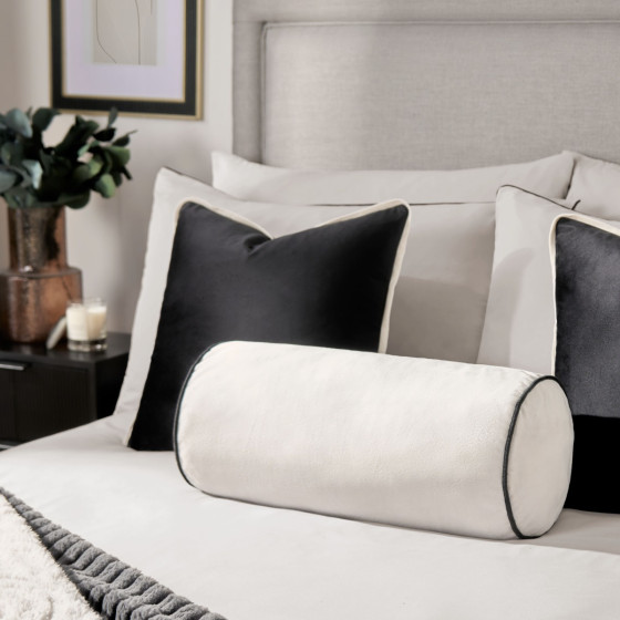 OHS Matte Velvet Bolster Cushion - Cream/Black