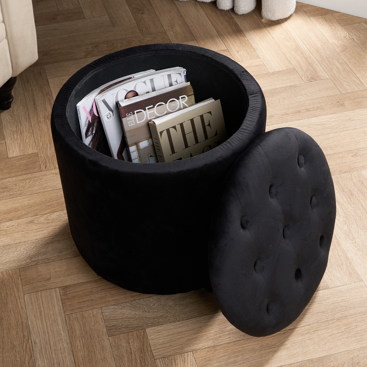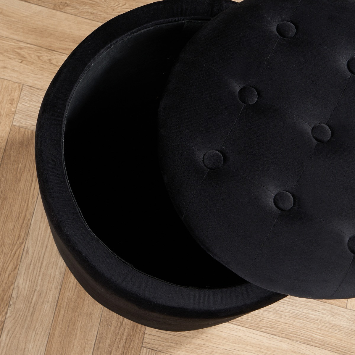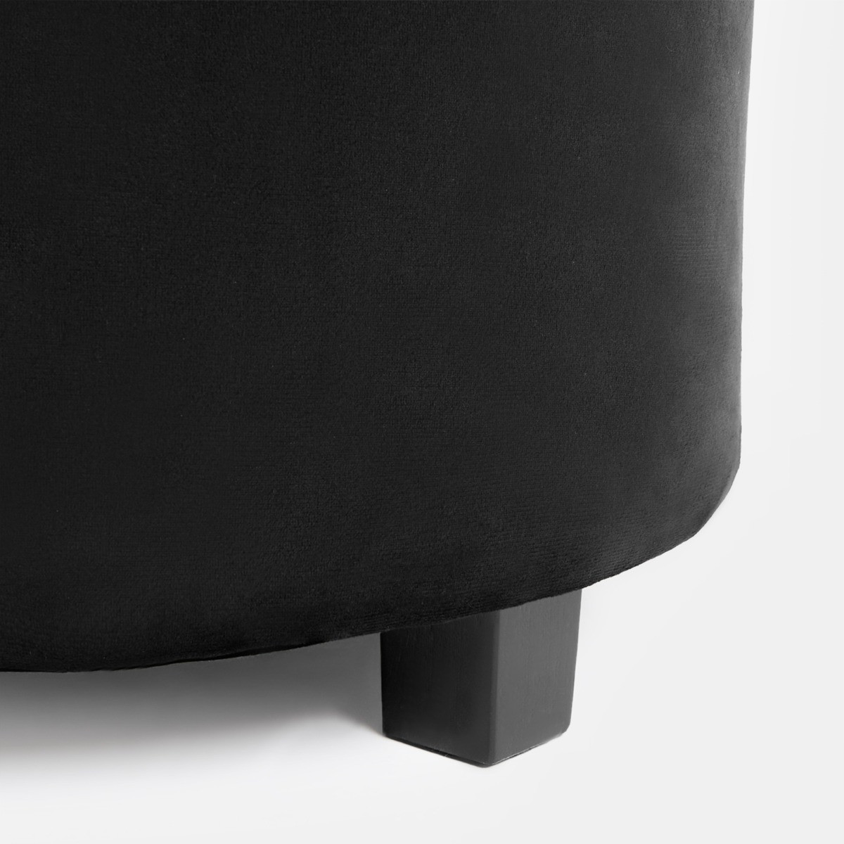 OHS Matte Velvet Button Top Storage Ottoman - Black