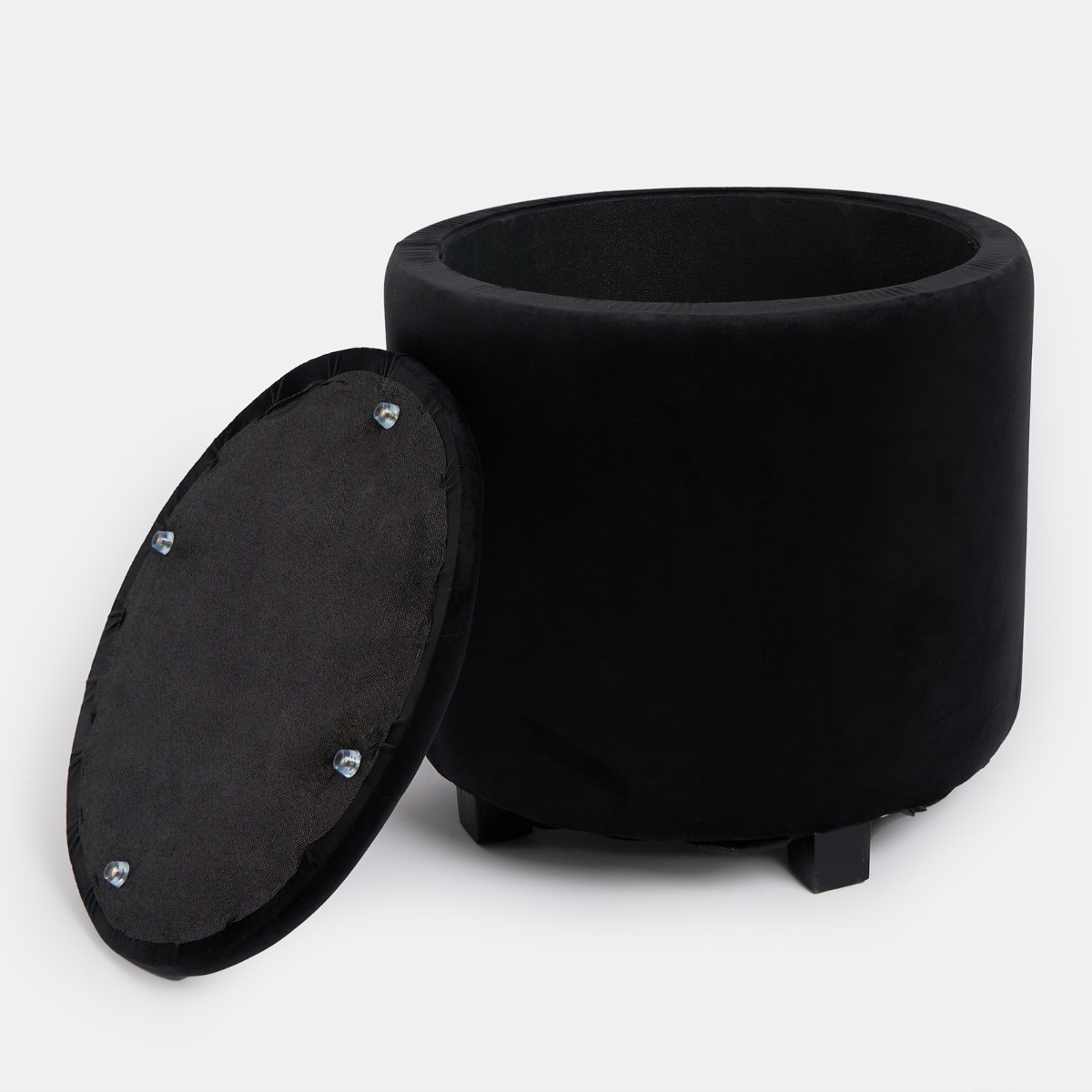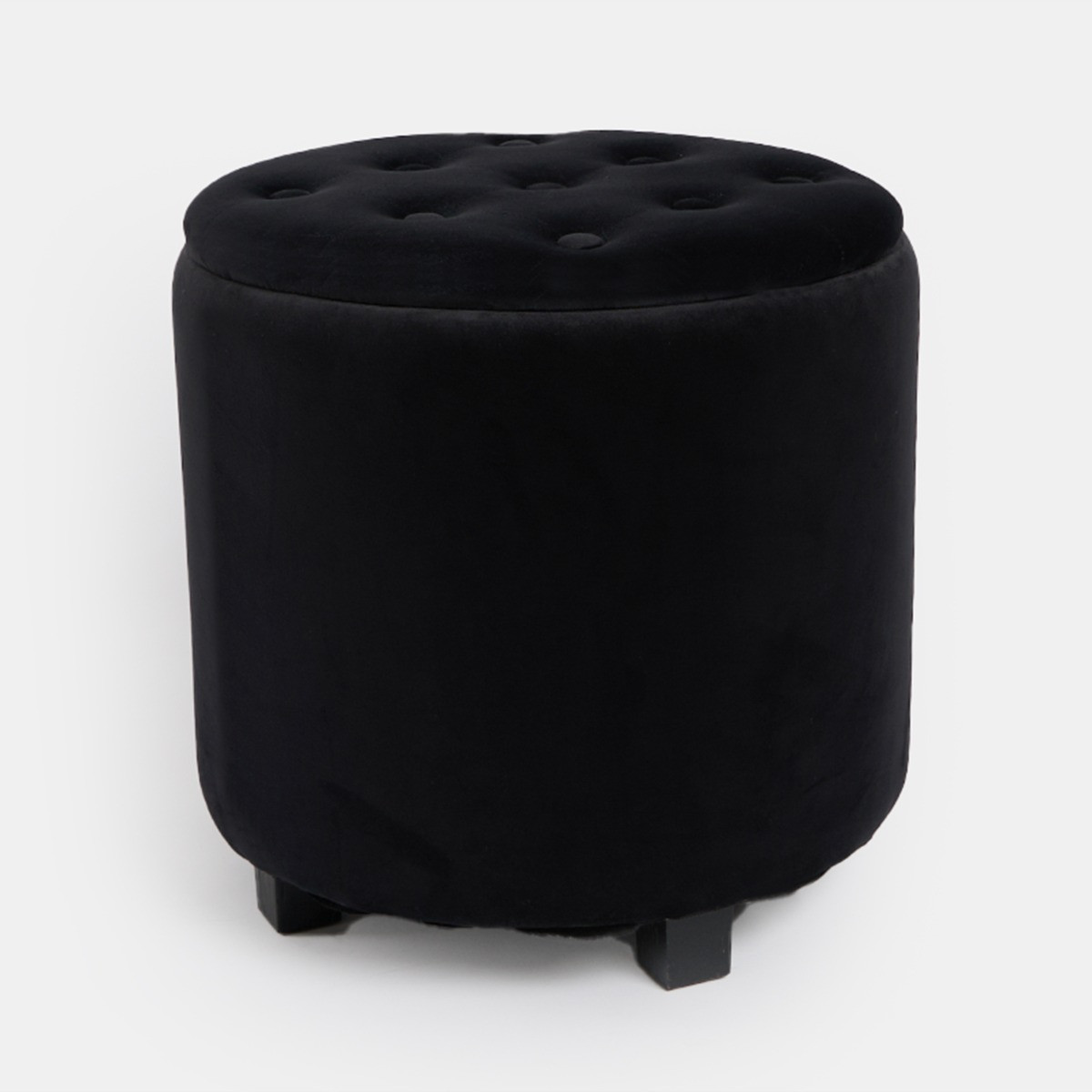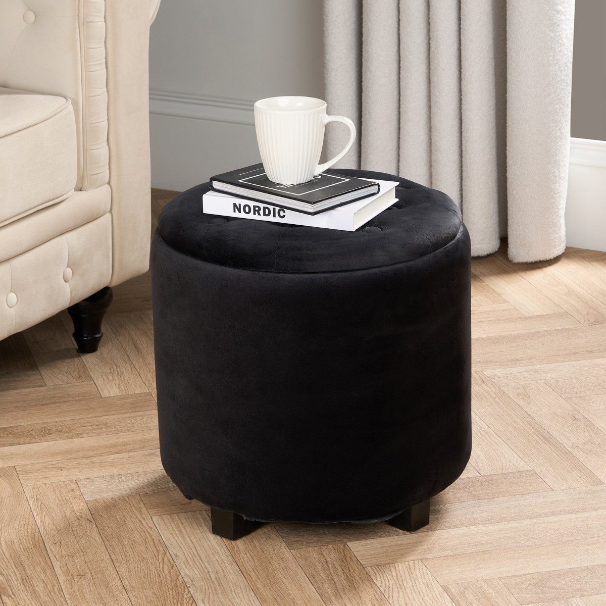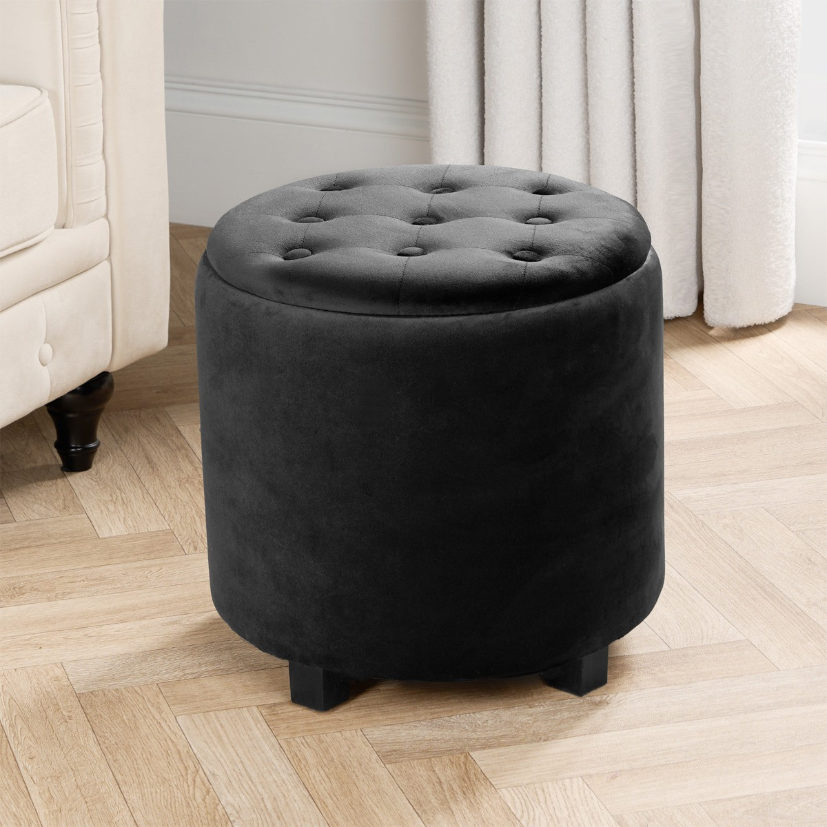 OHS Matte Velvet Button Top Storage Ottoman - Black