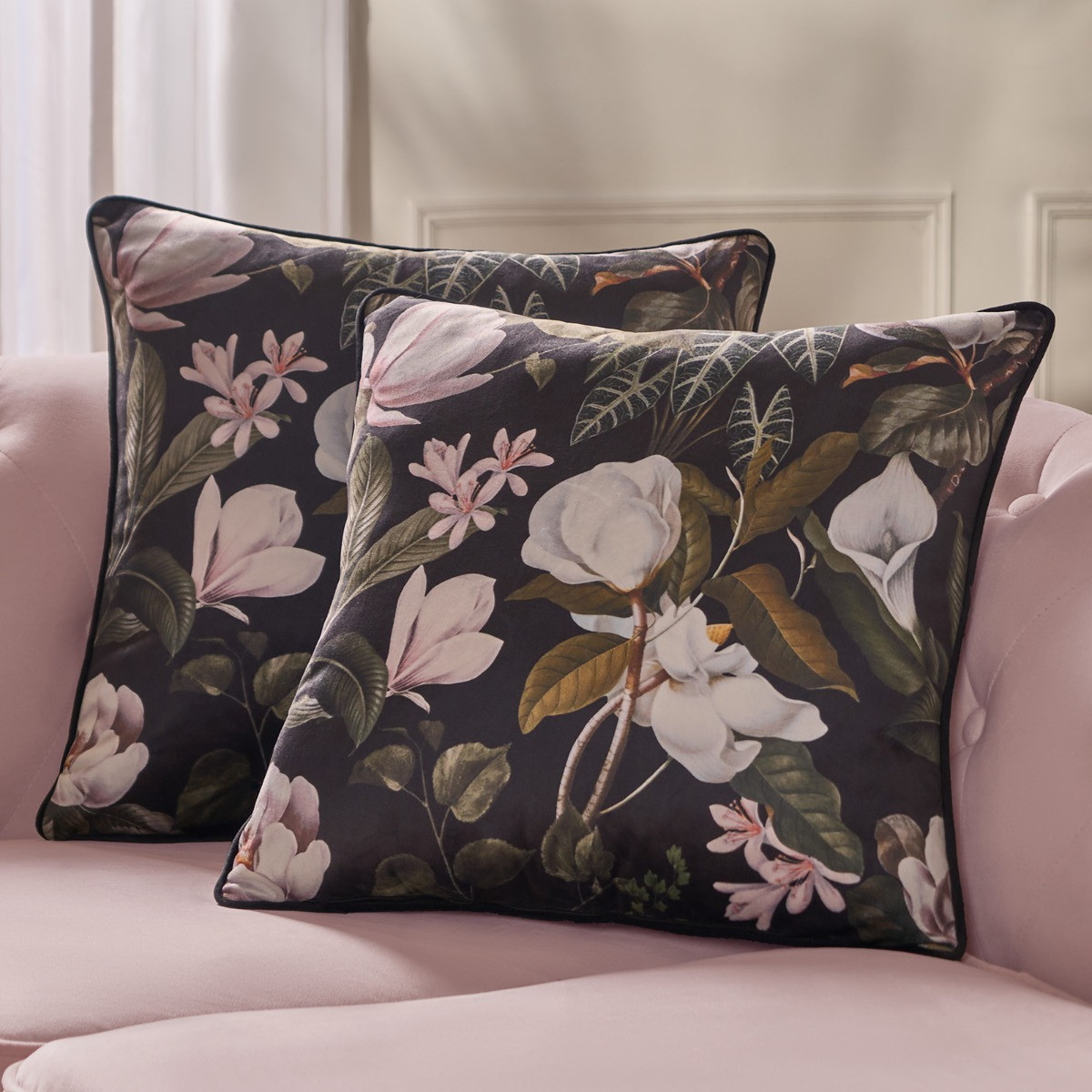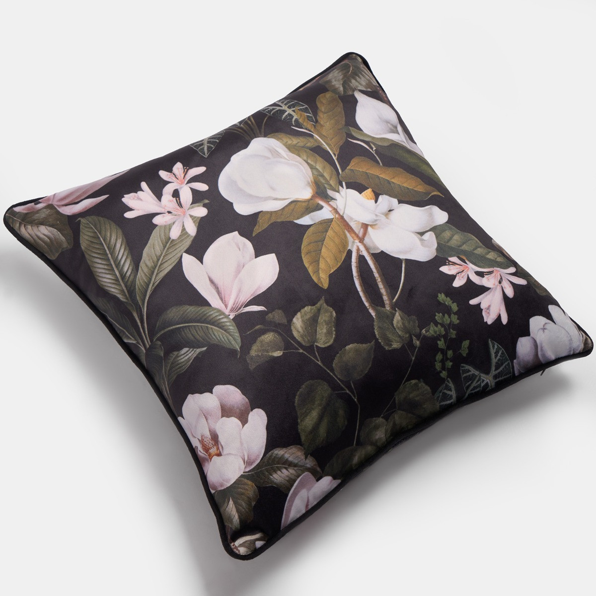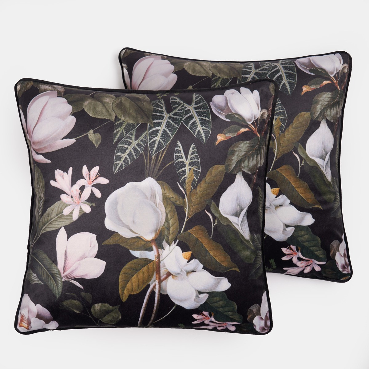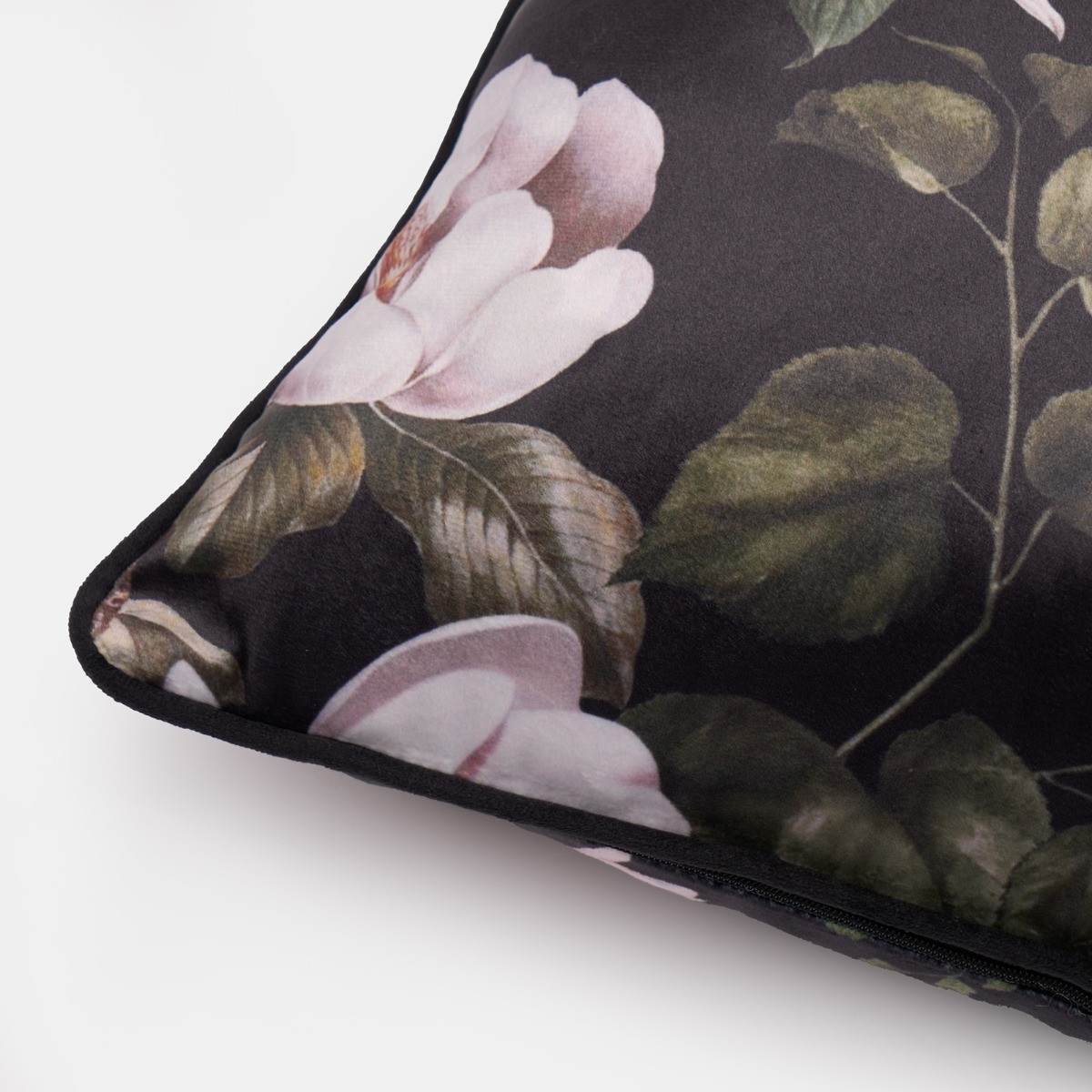 OHS Matte Velvet Floral Botanics Cushion Covers - Black