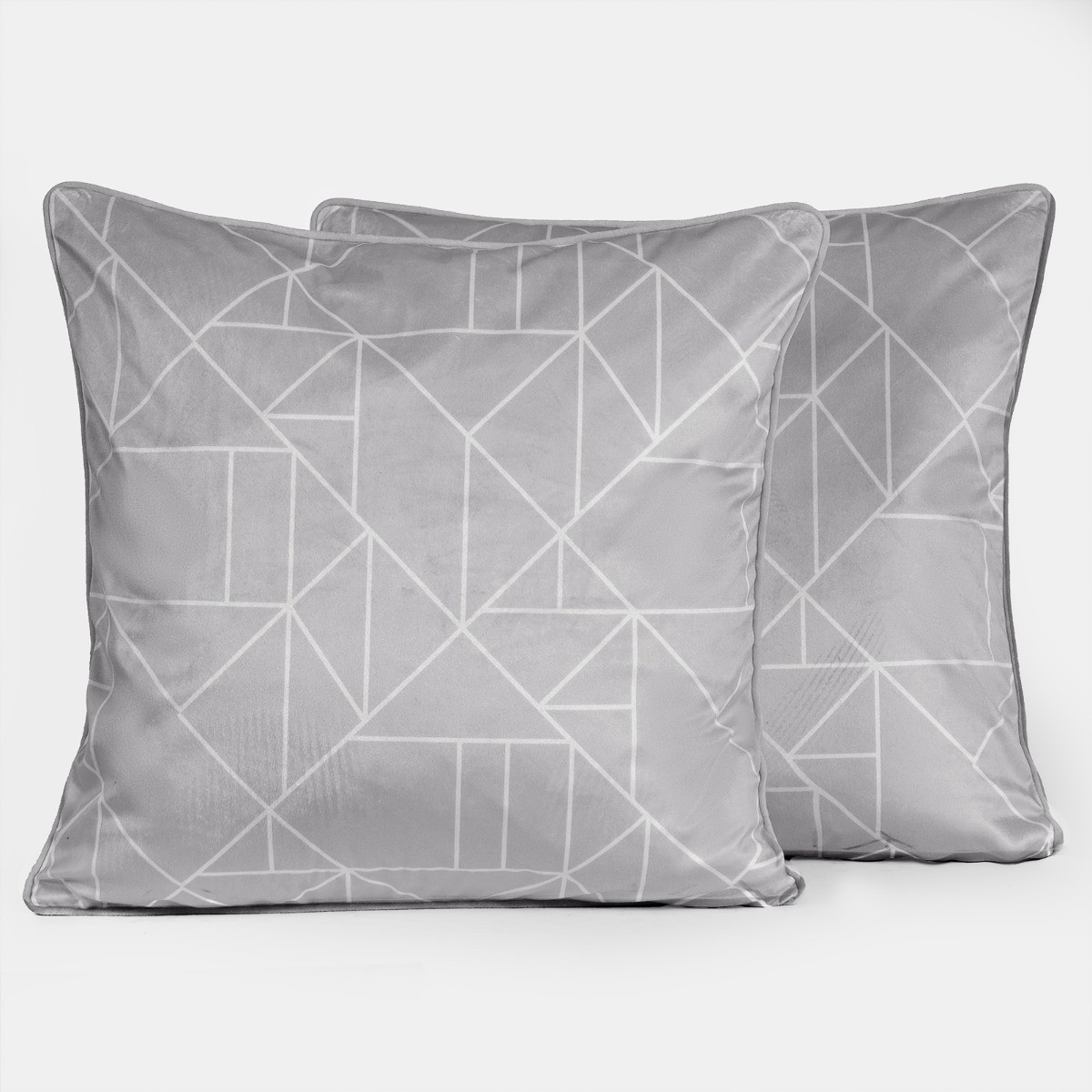 OHS Matte Velvet Geometric Print Cushion Covers - Grey