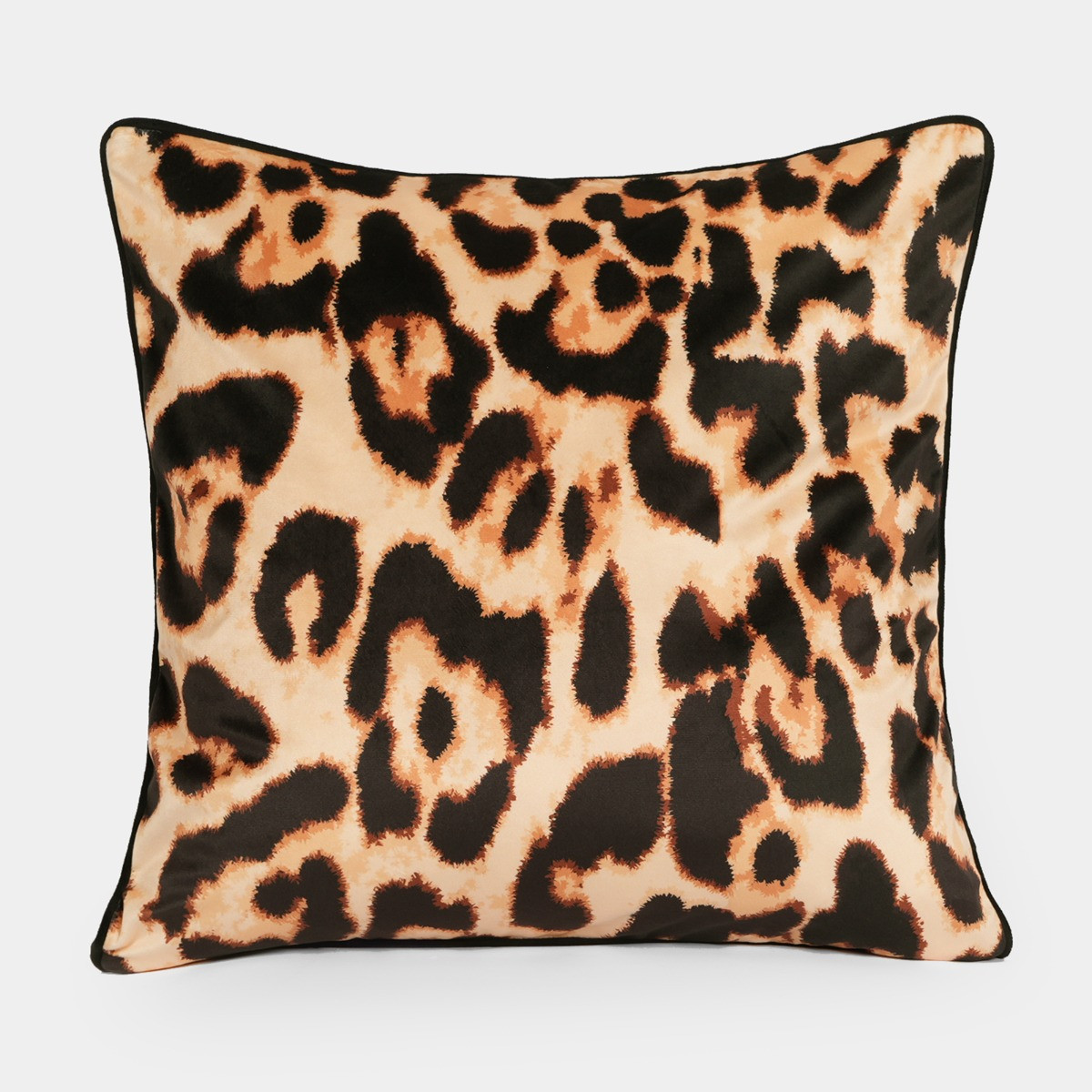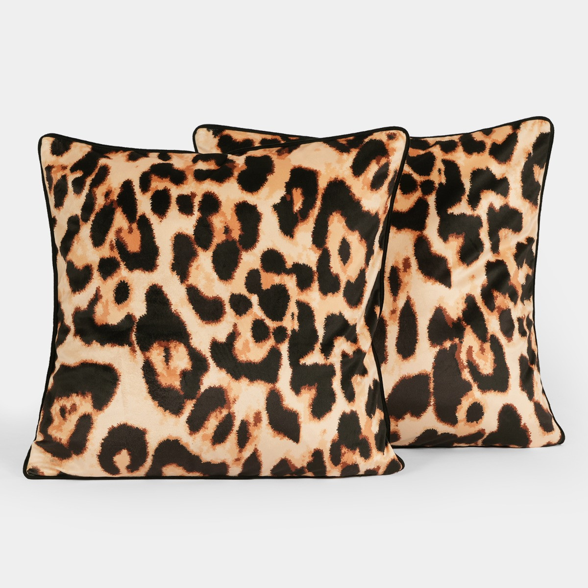 OHS Matte Velvet Leopard Print Cushion Covers - Natural