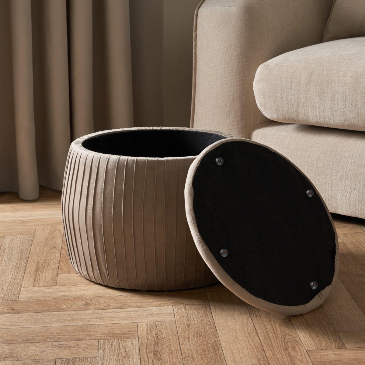 OHS Matte Velvet Pleated Storage Ottoman - Mink